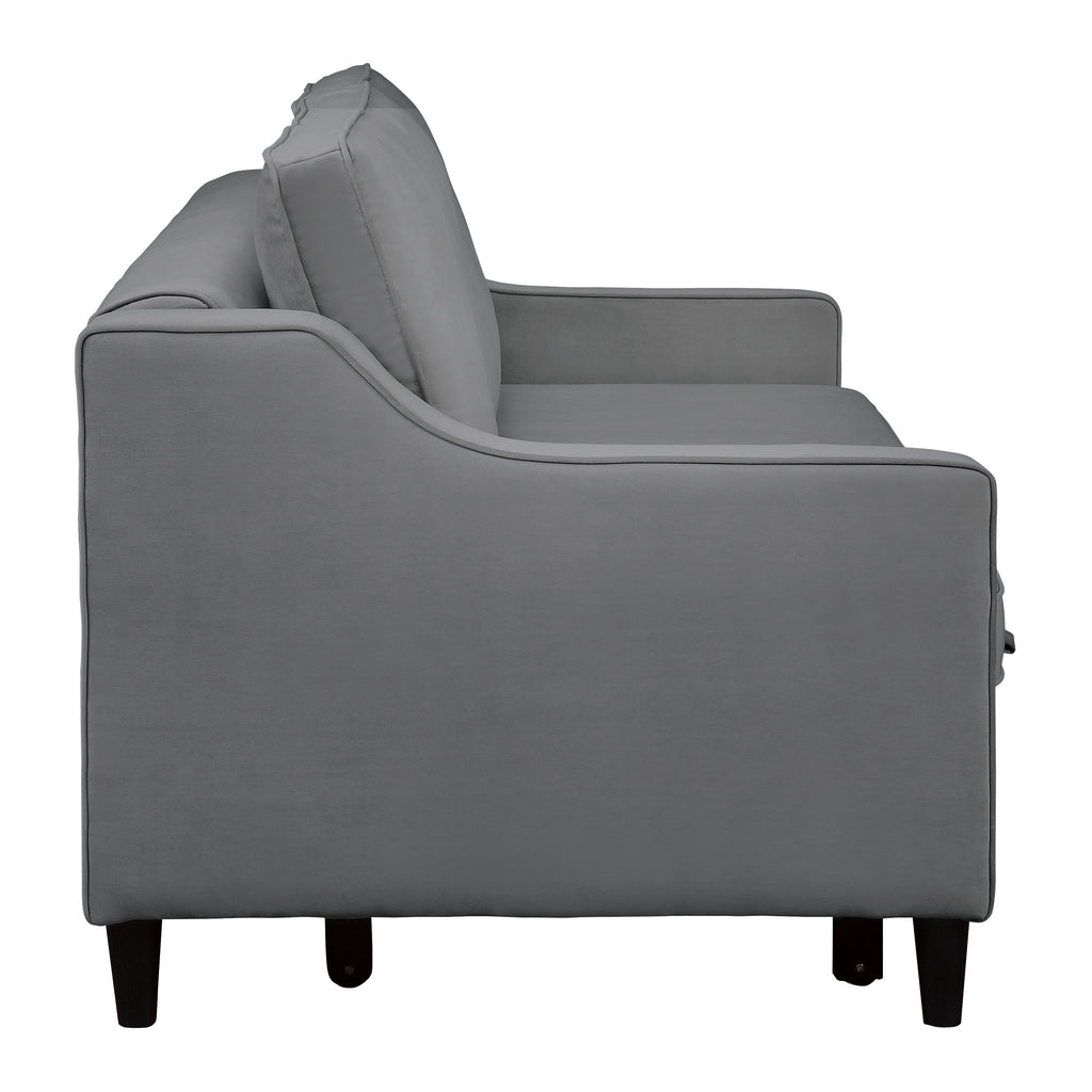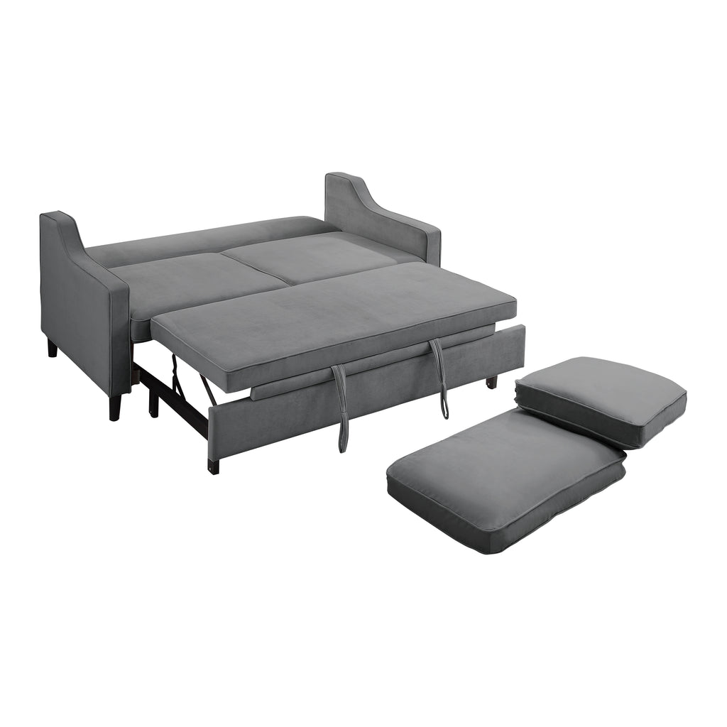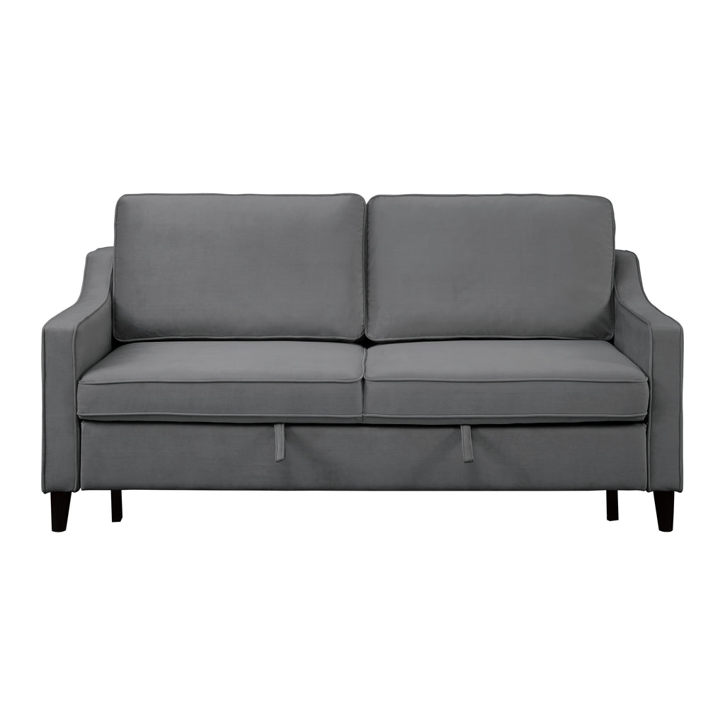 With versatility of function, the Adelia Collection presents as a unique seating option for your household. The pull-out bed and click-mechanism seat back of this sofa engage to create a platform for sleeping or relaxing. The seatback cushions are removable as well as reversible. Offered in dark gray velvet cover for neutral decorative placement and soft touch, the classic profile furthers the placement ability within a number of home environments. Sofa: 71.5 x 38 x 36.5H, Bed: 71.5 x 72 x 29.5H
