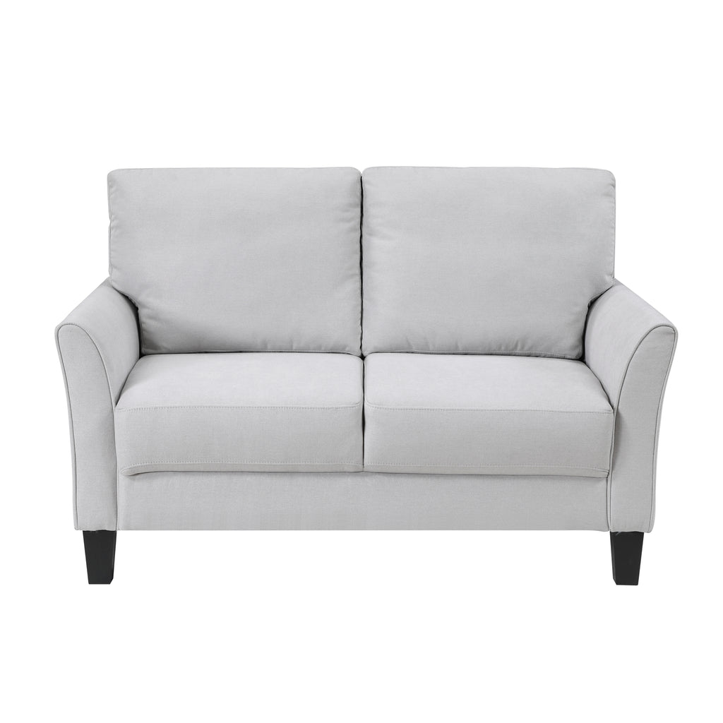 Upgrade your seating with this sleek and modern loveseat, designed to offer the perfect blend of comfort, style, and functionality. Featuring plush cushions, slightly flared arms, and a contemporary silhouette, this 2-seater sofa creates a welcoming feel in any space. The soft yet durable fabric upholstery enhances coziness, while the sturdy wooden frame and tapered legs provide long-lasting support. Ideal for small apartments, living rooms, bedrooms, or home offices, this loveseat is the perfect compact seating solution for relaxing, entertaining, or working in style.