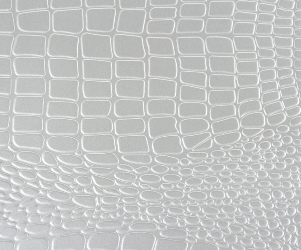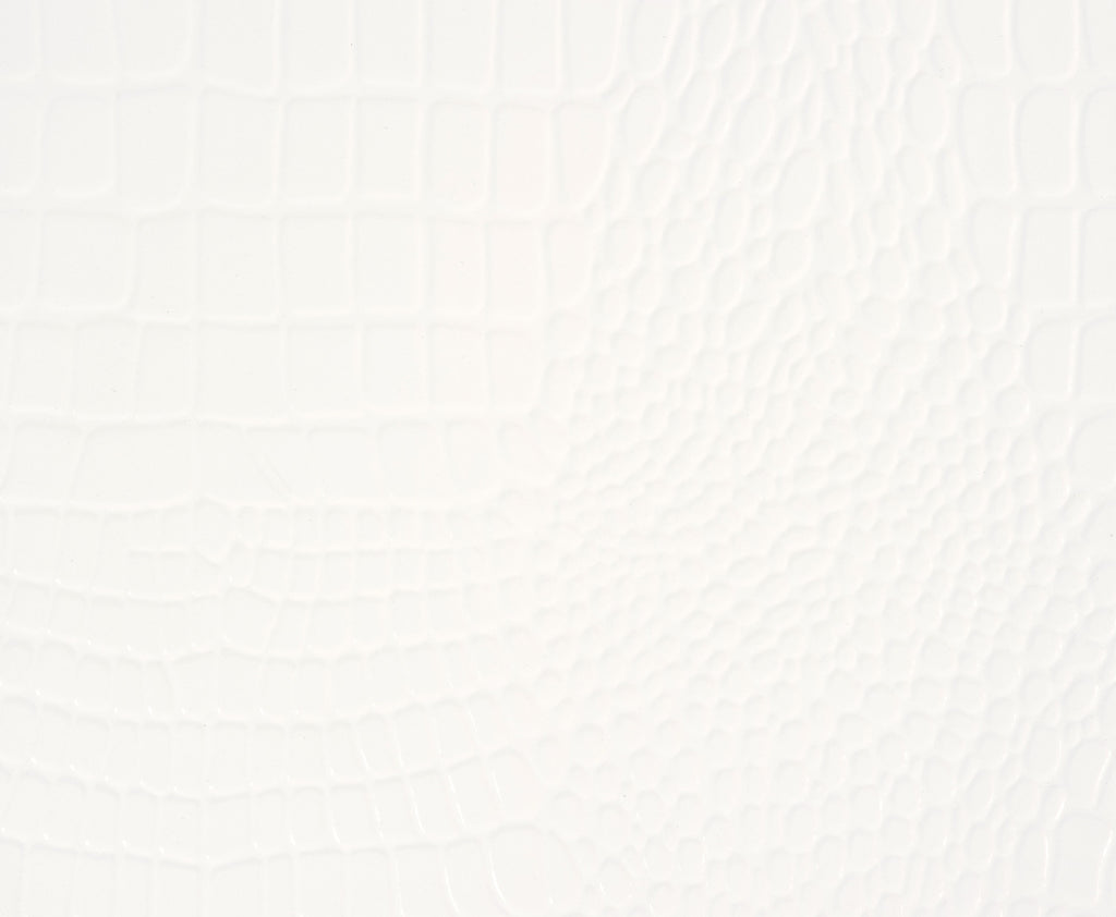 - Faux alligator embossed, textural drawer fronts with beveled mirror trim