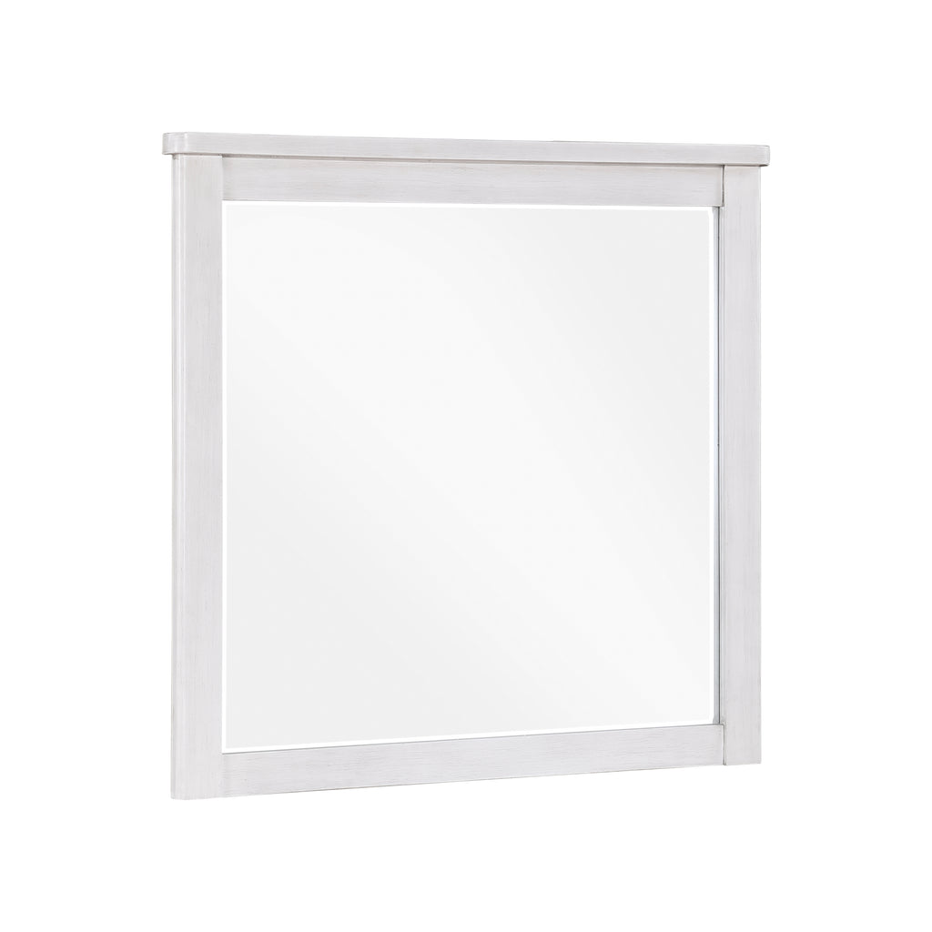 Hints of rustic styling permeate the transitional design of the Ambrose Collection, each subtle accent building to create a classic look for your bedroom. Antique White finish highlights the acacia veneer of the mirror's frame, providing unobtrusive accent to your bedroom's decor.