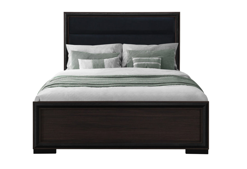 Each piece in the Amelia Bedroom Collection is crafted with meticulous attention to detail and durability, ensuring your investment stands the test of time. The bed serves as the focal point of your sanctuary with its plush upholstered headboard. The accompanying case goods, including the dresser, nightstand, and chest, showcase cohesive design elements, such as sleek black drawer pulls, adding both visual interest and functionality to your space.