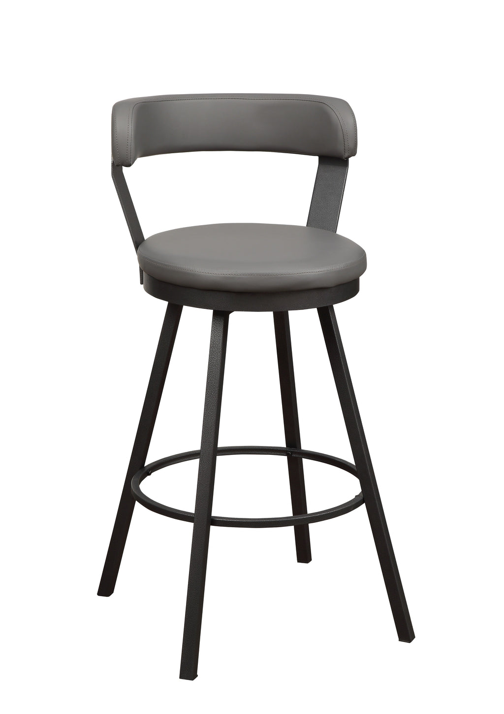 Perfectly styled for your casual dining space is the Appert Collection. This 29-inch pub height chair offering features a dark gray metal base that serves to support the gray faux leather round swivel seat. Allowing for perfect placement within your space, the Appert Collection is offered in a 24-inch counter height and 4 additional colors – brown, black, red and white.