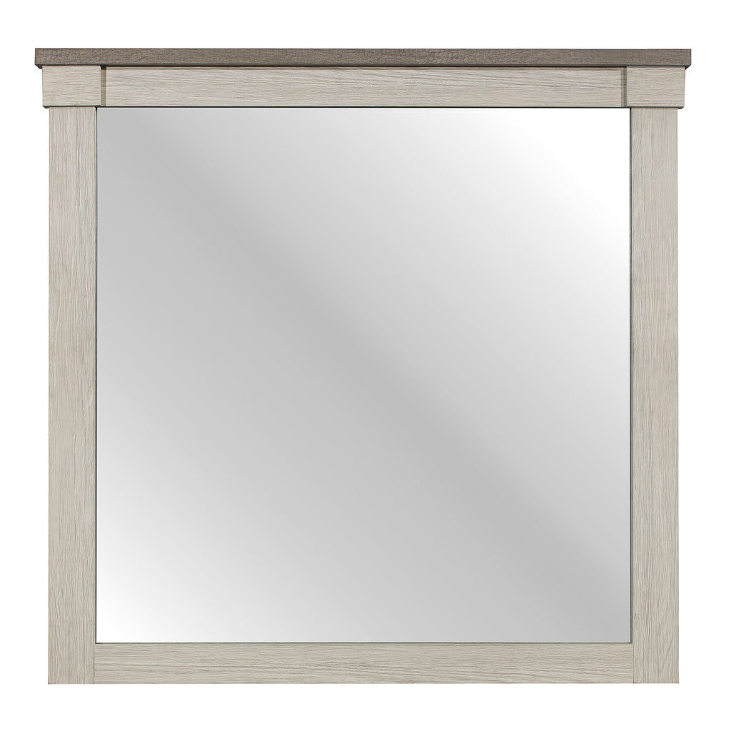 Designed for your transitionally styled bedroom is the Arcadia Collection. The two-tone look of the mirror frame is achieved with white framing and variegated gray printed faux-wood grain veneer. 42 x 1.5 x 40.5H