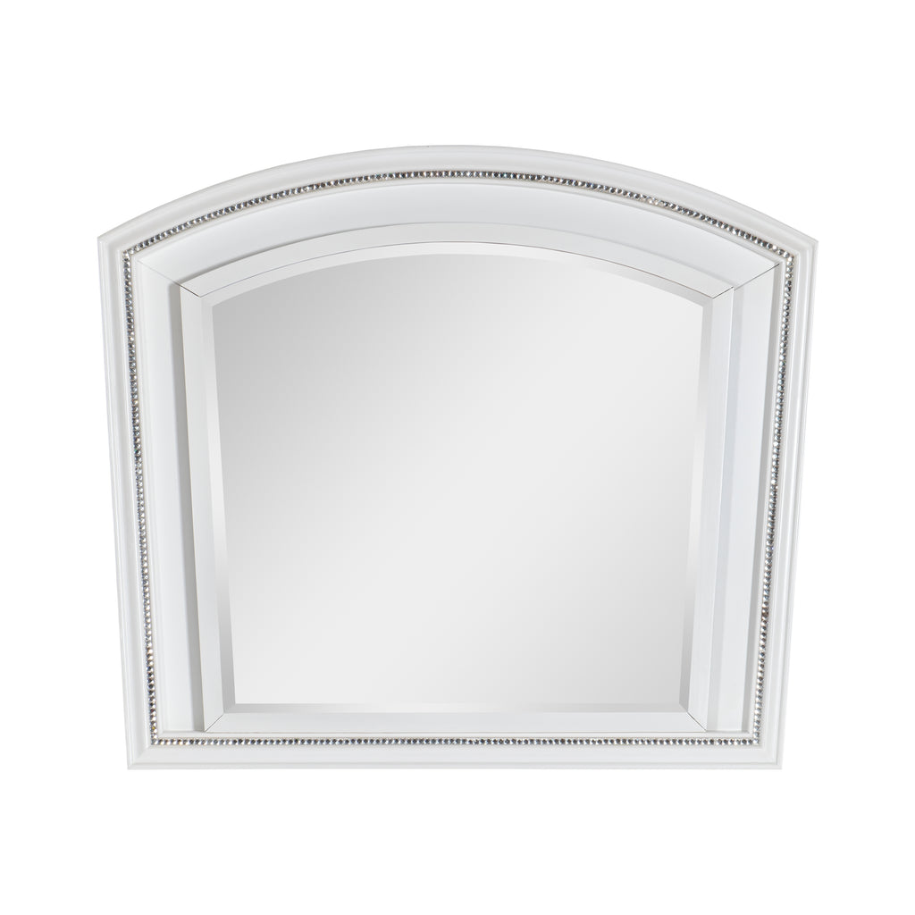 Visually mesmerizing, light dances off the accentuating details of the elegant Aria Collection. The eye-catching iridescence of the mirror's frame is illuminated with back-lit LED while the embedded acrylic crystal hardware sparkles against the bright white finish of the collection. 45 x 2 x 39.5H