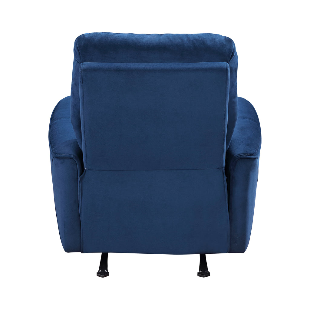 Whether utilized as a stand-alone chair or as an addition to your current seating arrangement, the Artem Collection’s modern profile will provide a functional and comfortable seating option for your home. With the push of a button, you are taken from seated to laying down, your position adjusted to your personal liking while the gentle rocking motion of the chair furthers your comfort. The chair is covered in navy velvet fabric upholstery for a bold complement to your space.