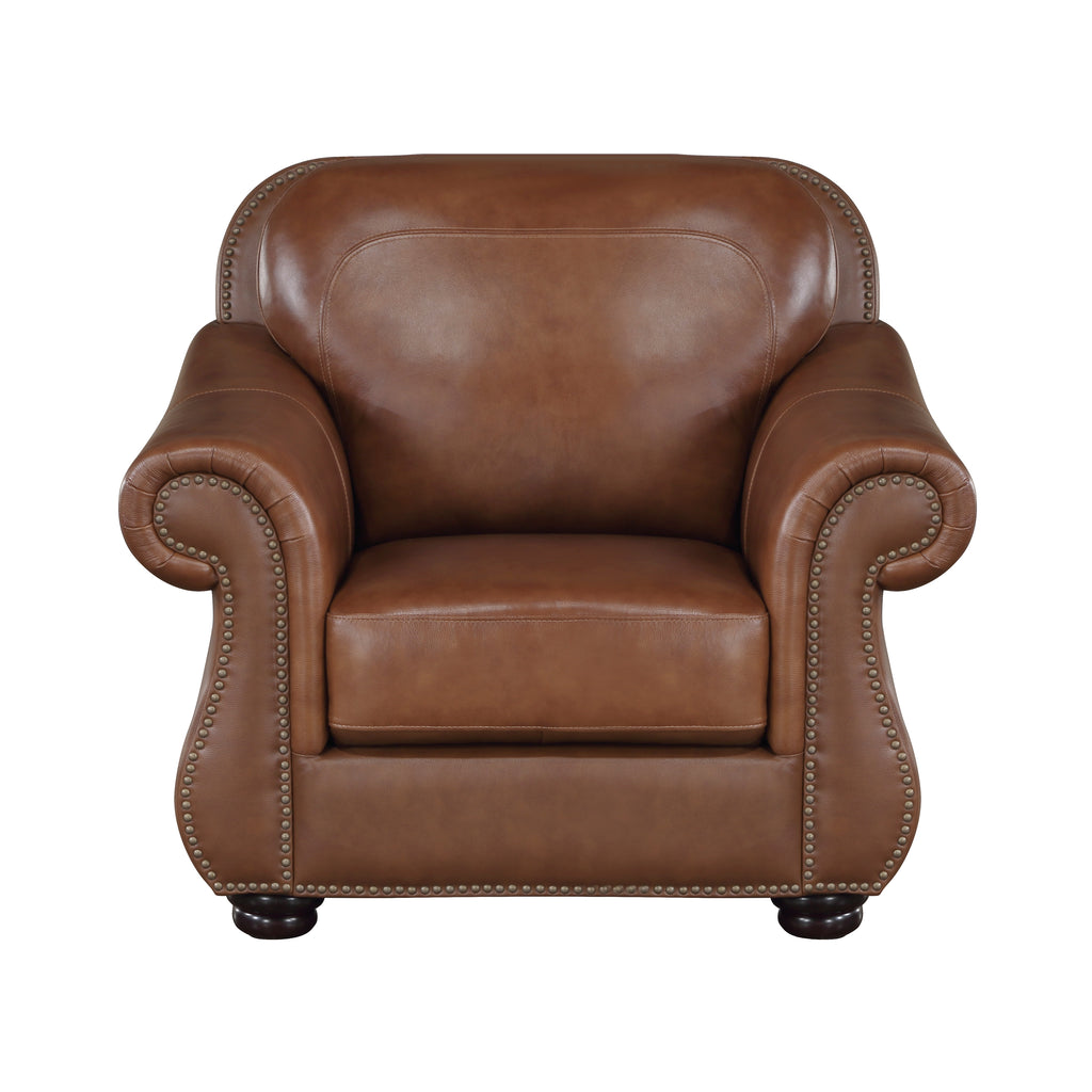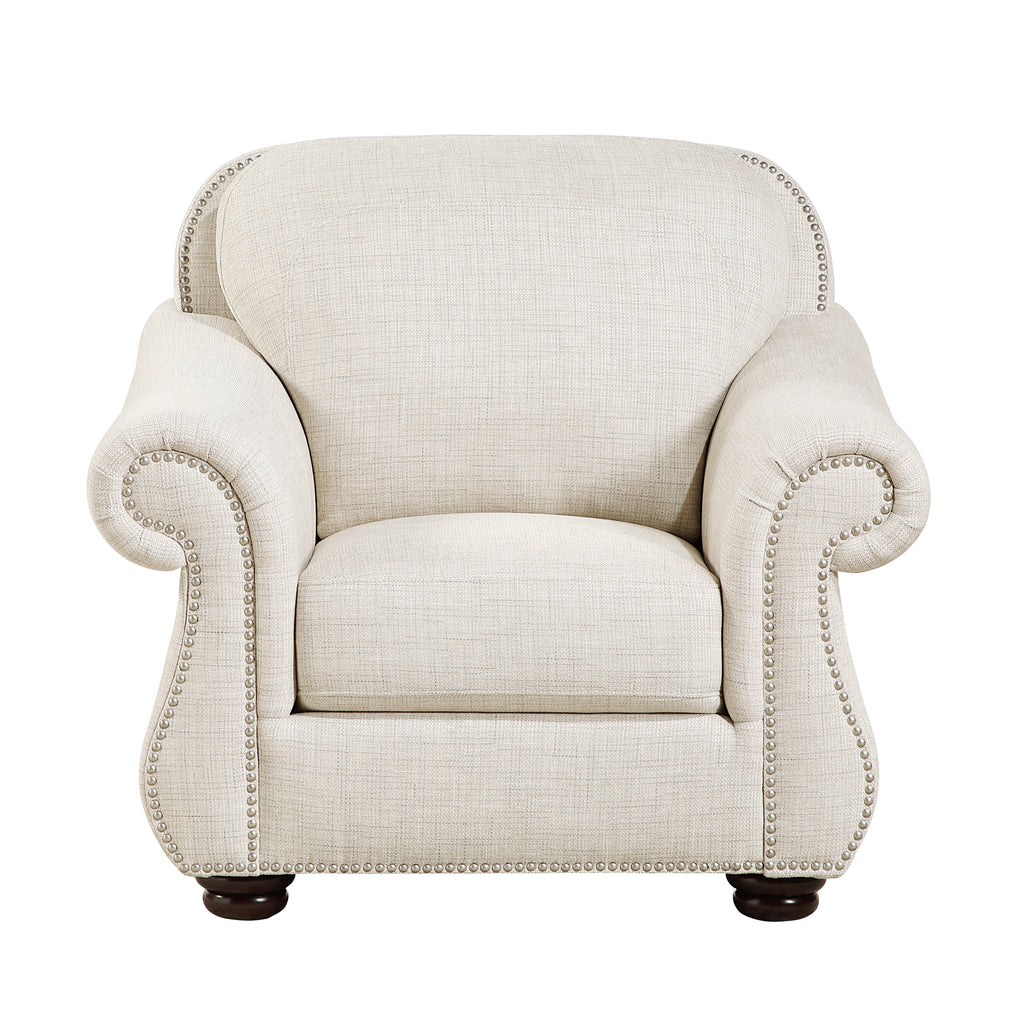 Bring timeless elegance and cozy comfort to your home with this classic upholstered armchair, designed to offer both sophisticated style and plush seating. Featuring rolled arms, deep cushioning, and decorative nailhead trim, this accent chair provides exceptional lumbar and full-body support while enhancing any space with its refined aesthetic. Upholstered in soft yet durable fabric, it complements a variety of décor styles, from traditional to modern farmhouse. Built with a sturdy wood frame and turned bun feet, this armchair ensures long-lasting durability and stability, making it the perfect addition to your living room, bedroom, reading nook, or home office.