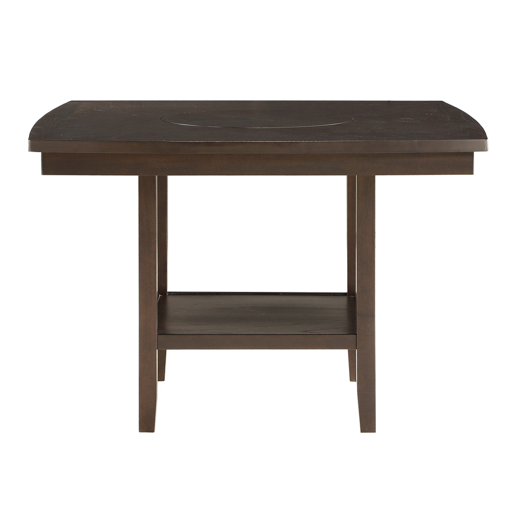 Sharing a meal with friends and family is made easy with the Balin Collection. Designed for maximum efficiency and personal decorative preference, each feature of the collection lends individual character to the overall design. The rotation of the inset lazy Susan allows for quick and easy access to your meal. The table’s base features an open storage shelf for display of your favorite tabletop items. The mindy veneer of the collection is finished in dark brown for neutral accent to your casual dining space.