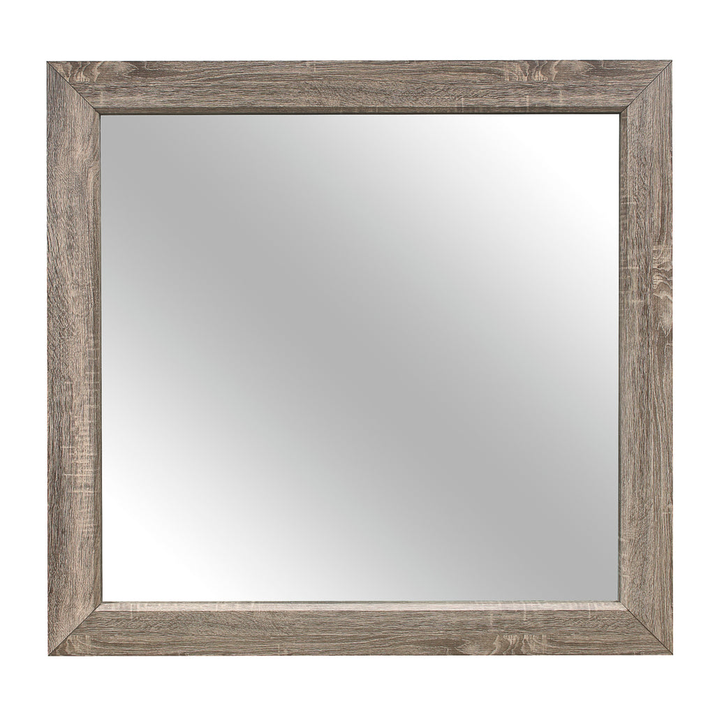 Blending the elements of contemporary design and rustic aesthetic, the Beechnut Collection is a unique addition to your bedroom. The natural finish enhancing the embossed faux-wood veneer of the mirror's frame defines the modern-rustic aesthetic. 41 x 1 x 39H