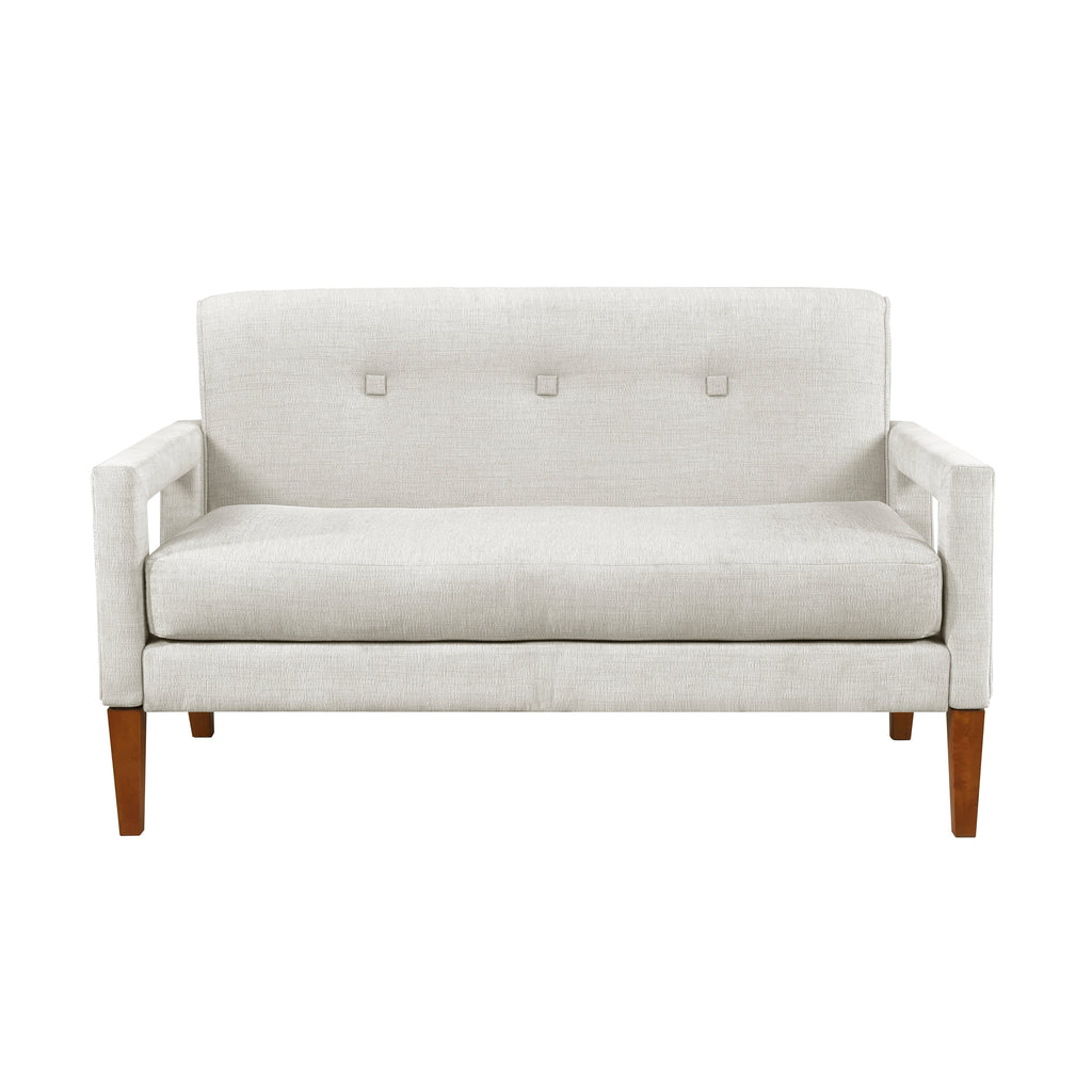 Bring modern comfort and versatile style to your living space with this beige chenille loveseat. Featuring a robust solid wood and plywood frame, foam padding over pocket coils, and soft chenille fabric upholstery, this loveseat offers both durability and a luxurious seating experience. The reversible seat cushions extend the life of your loveseat, while the removable covers with zippers make cleaning and maintenance a breeze. The solid wood legs in a walnut finish provide a warm, elegant foundation. With a 300lb weight capacity per seat (600lb total), and easy assembly, this loveseat is perfect for enhancing your living room, apartment, or small space with a blend of style and practicality.