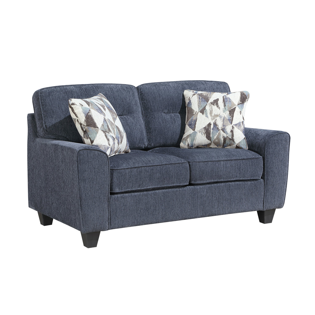 Enhance your living space with the comfortable and stylish loveseat, designed for cozy seating and lasting durability. Upholstered in a soft and inviting chenille fabric, this loveseat offers a welcoming spot to relax and entertain. The supportive foam padding over pocket coils ensures exceptional comfort and resilience for everyday use, while the reversible back and seat cushions extend the life of your furniture and offer easy maintenance. For added convenience, the cushion covers are removable for simple spot cleaning. Accented with exposed feet featuring a sleek black faux wood finish and including two coordinating decorative pillows, this loveseat effortlessly blends comfort with contemporary style. Built with a sturdy plywood frame and boasting a weight capacity of 300lbs per seat, the loveseat is a durable and attractive addition to any home.