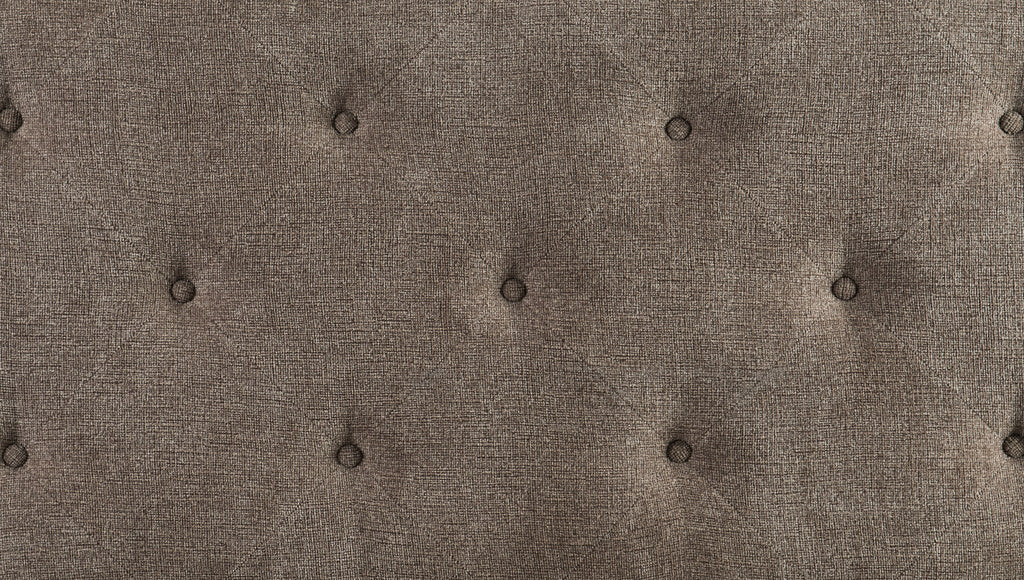 Rustic styling intersects with traditional lines in the design of the Bolingbrook Collection. The charcoal finish over pine solids and engineered pine veneer creates a warm complement to the elegantly framed queen platform storage bed. Providing subtle contrast to the groups finish is the button tufted neutral tone fabric headboard insert. Knob hardware subtly accents the footboard’s drawer fronts. 66.25 x 87.5 x 59.25H