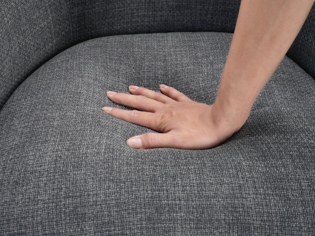 Upgrade your living space with this contemporary gray fabric barrel chair, designed for both style and comfort. Featuring a durable plywood frame and foam padding over pocket coils, this chair provides exceptional support and a luxurious seating experience. The textured gray fabric upholstery adds a touch of modern sophistication, while the attached back and seat cushions offer a clean, tailored look. The solid wood legs in a light brown finish provide a warm and stylish foundation, complementing any décor. With a 300lb weight capacity and easy assembly, this chair is perfect for adding a cozy and elegant touch to your living room, bedroom, or reading nook.