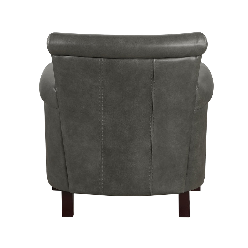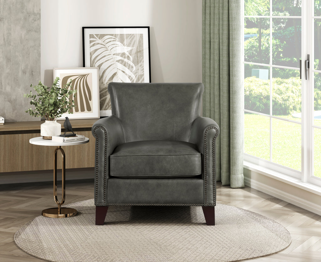 Serving to pair within your home’s available space, the Braintree Collection accent chair provides the additional seating you require. Burnish-gray top-grain leather covers the seating everywhere the body touches, with split-grain leather match covering everywhere else. The subtle lines of the chair lend to its transitional style while nailhead trim lends classic traditional accent.