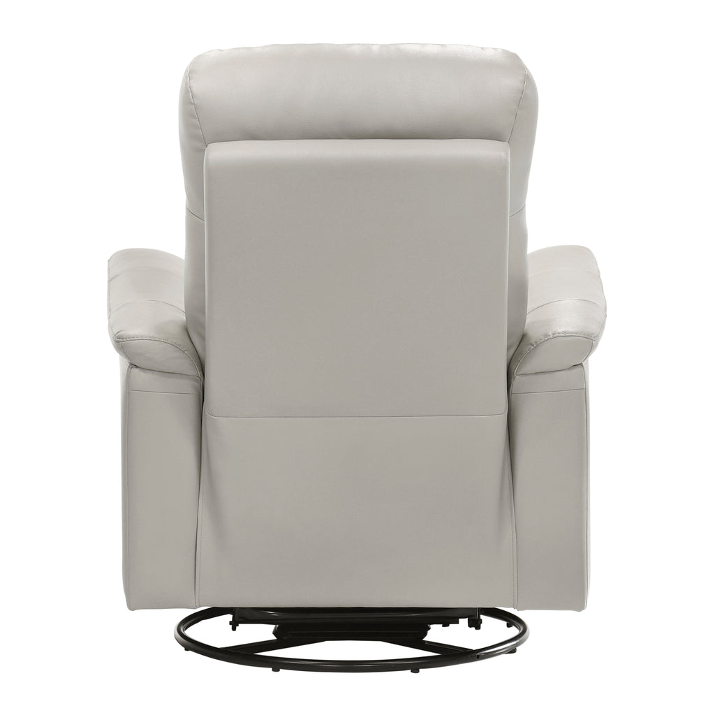 Sit back, put your feet up and relax with the Bristow Collection. The Bristow Collection swivel glider recliner allows you to fully engage with your surroundings with 360-degree motion, manual pull-tab reclining, and a gentle gliding motion. Latte-hued top grain leather upholstery with faux leather match covers the chair, providing a gentle touch, and a perfect complement to your home’s décor.