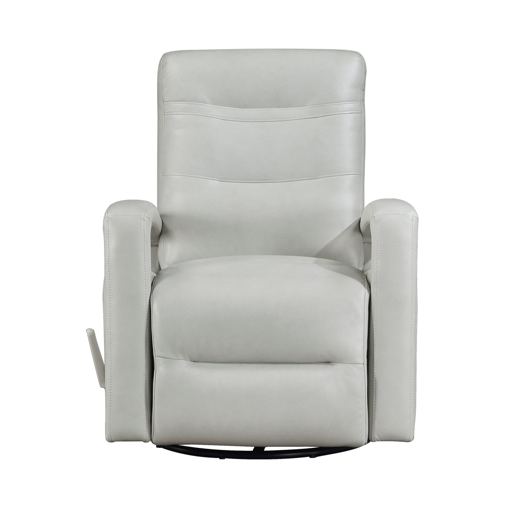Modern lines and plush comfort combine to create the Camden Collection. Breathable faux leather covers the swivel glider recliner and is offered in Navy for a perfect complement to your home’s décor. The open arm design lends to the modern profile while side mounted pull handle engages the manual reclining mechanism.