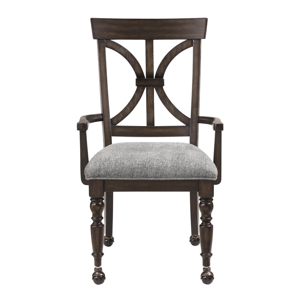 The solid transitional styling of the Cardano Collection creates an impactful design presence in your home office. Utilizing distinct accent techniques – plank effect, rasping, saw marks – and pairs them with traditional framing and a driftwood charcoal finish over acacia veneers. The neutral gray tone of the office chair’s padded fabric seat serves as a perfect complement to the contoured x-back wood framing of the armchair, while casters allow for ease of movement within your space.