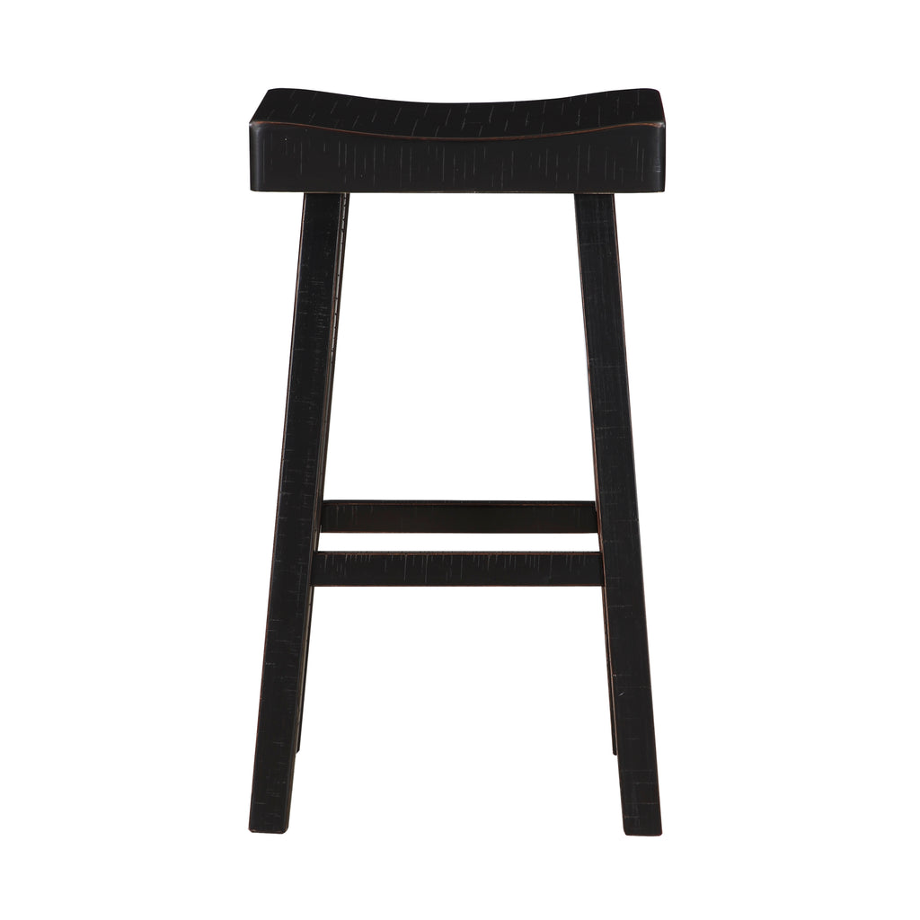 Stylistically versatile for placement in your home’s casual dining space, the transitional design of the included three 29-inch contour-seat barstools and 42-inch bar-height table is complemented with rusticated accent, subtle profile, and a neutral finish – black rub-through - to make the Caspian Collection a perfect choice for your dining needs.