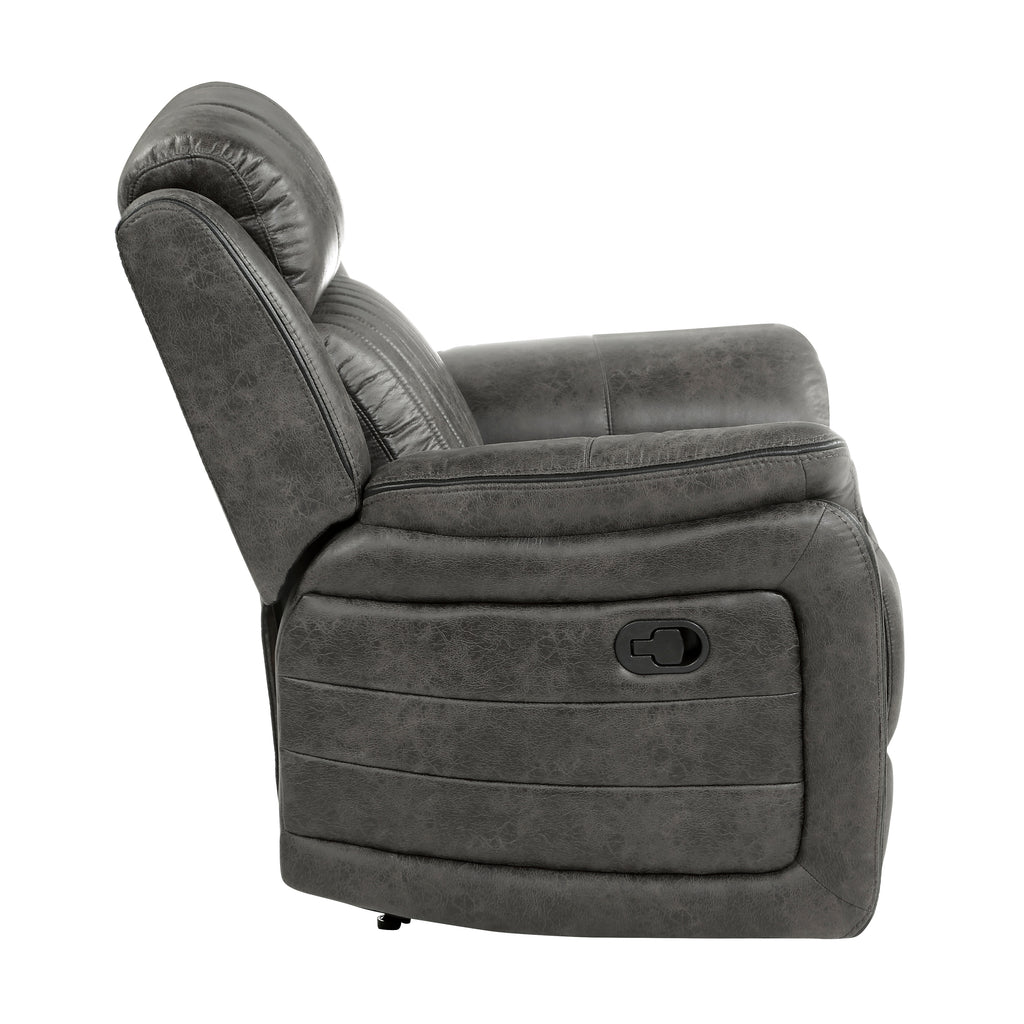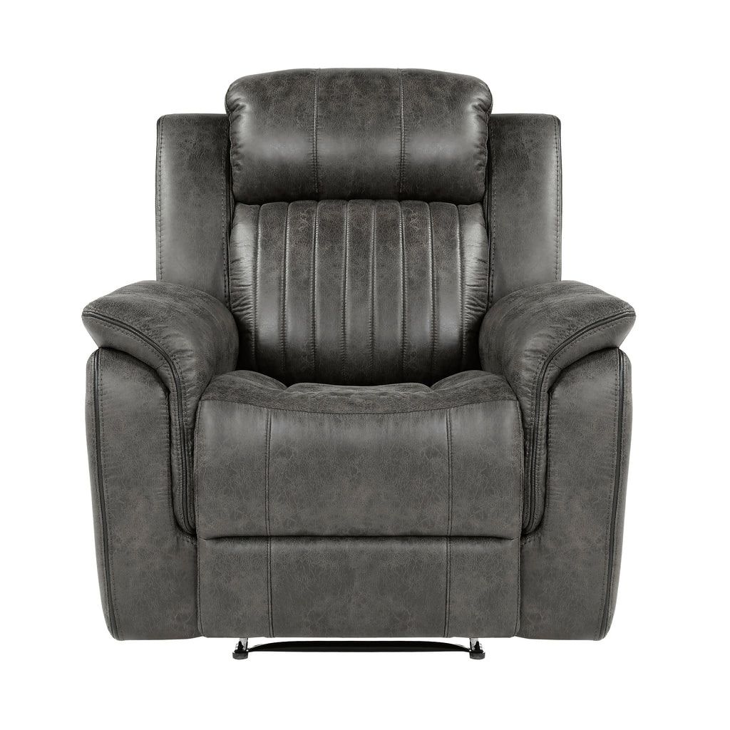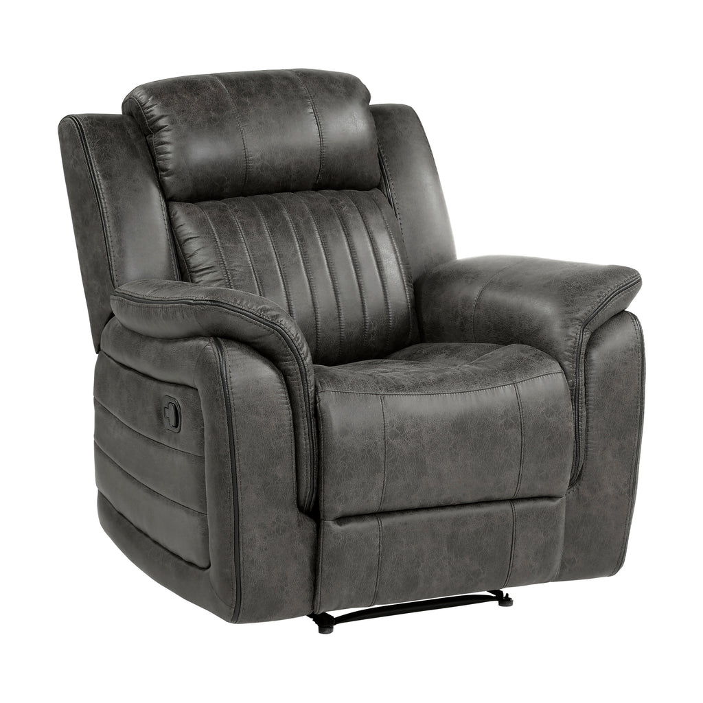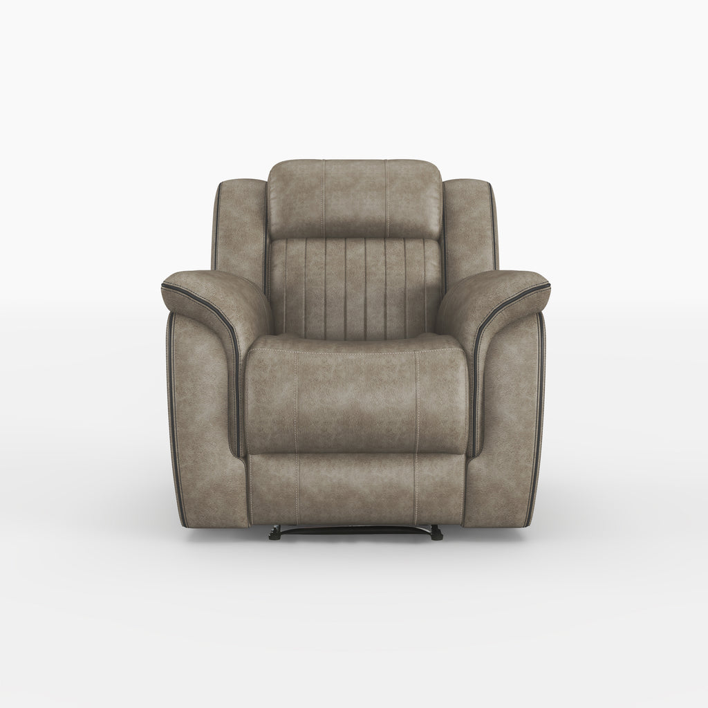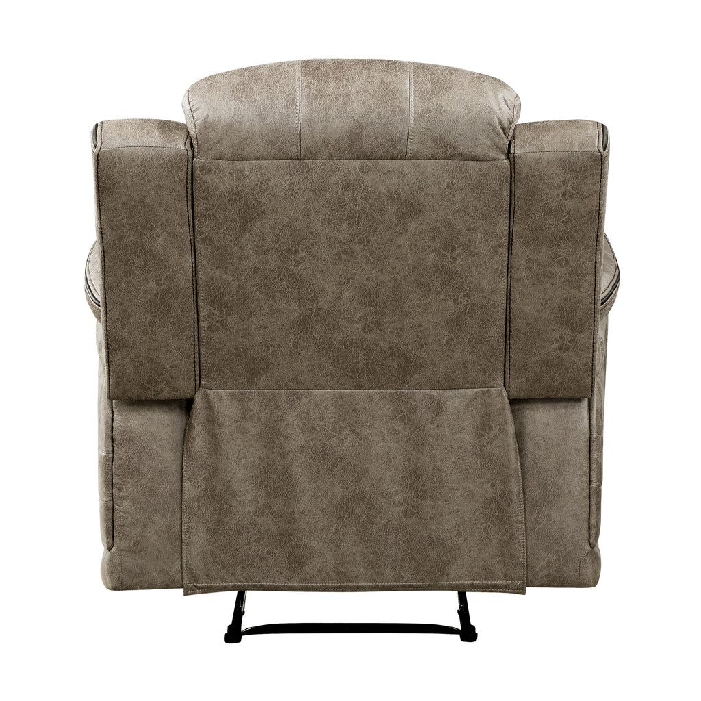 The design of the Centeroak Collection provides a platform for your relaxing downtime. From the classic transitional style to the versatile neutral color of the sandy brown polished microfiber fabric covering, this chair is the perfect addition to your living room. Plush seating features vertical tufting, pillow-top arms, enhanced by the reclining mechanism which is engaged with a pull of the side mounted tab, taking you from seated to prone in an easy motion.