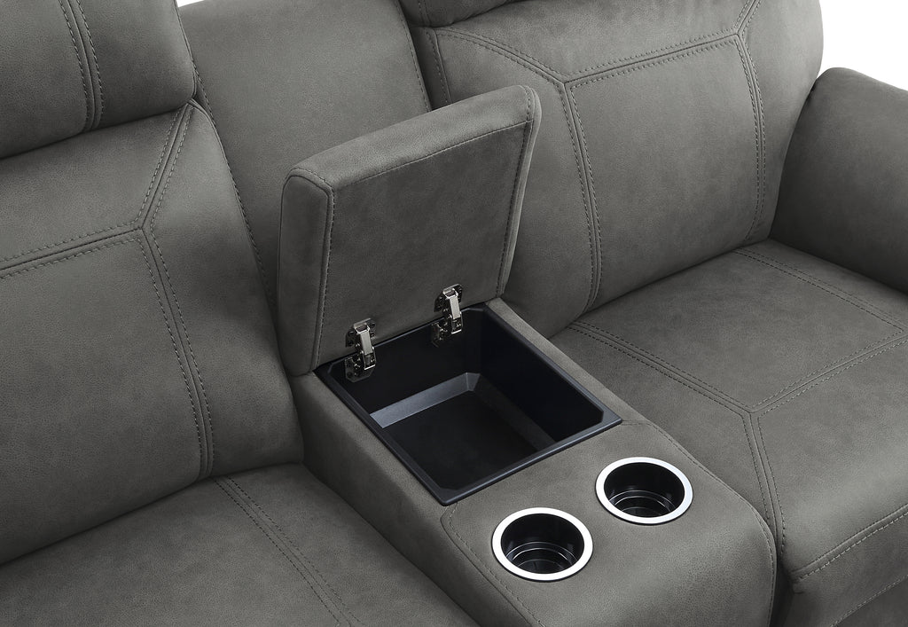 The modern profile of the Clifton Collection serves to provide comfort, function and style to your home’s casual living room. The blue polished microfiber that covers the plush arms and seating of the love seat lends to the decorative versatility of the collection. The love seat features dual glider reclining ends with a center console featuring cupholders and storage. Manual motion mechanisms operate with the pull of a side-mounted tab, that once engaged, take you from seated to reclined in an easy motion.