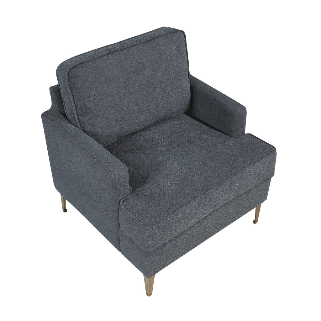 Introduce a touch of sophisticated comfort to your living space with this beige chenille armchair. Featuring a sturdy plywood frame, foam padding over pocket coils, and soft chenille fabric upholstery, this chair offers both durability and a luxurious seating experience. The reversible back and seat cushions extend the life of your armchair, while the removable cushion covers with zippers make cleaning and maintenance a breeze. The brushed gold finish metal legs add a touch of modern elegance. With a 300lb weight capacity and easy assembly, this armchair is perfect for enhancing your living room, bedroom, or reading nook with a blend of style and practicality.