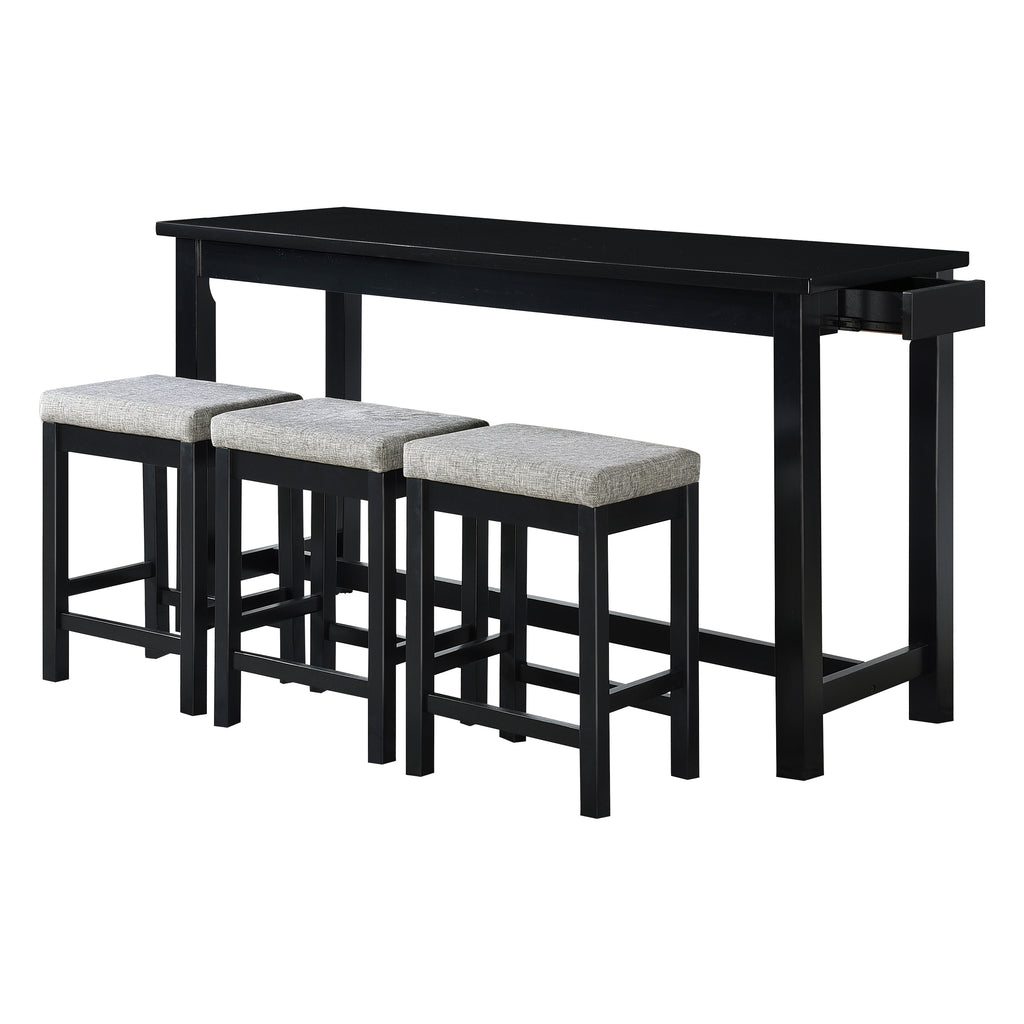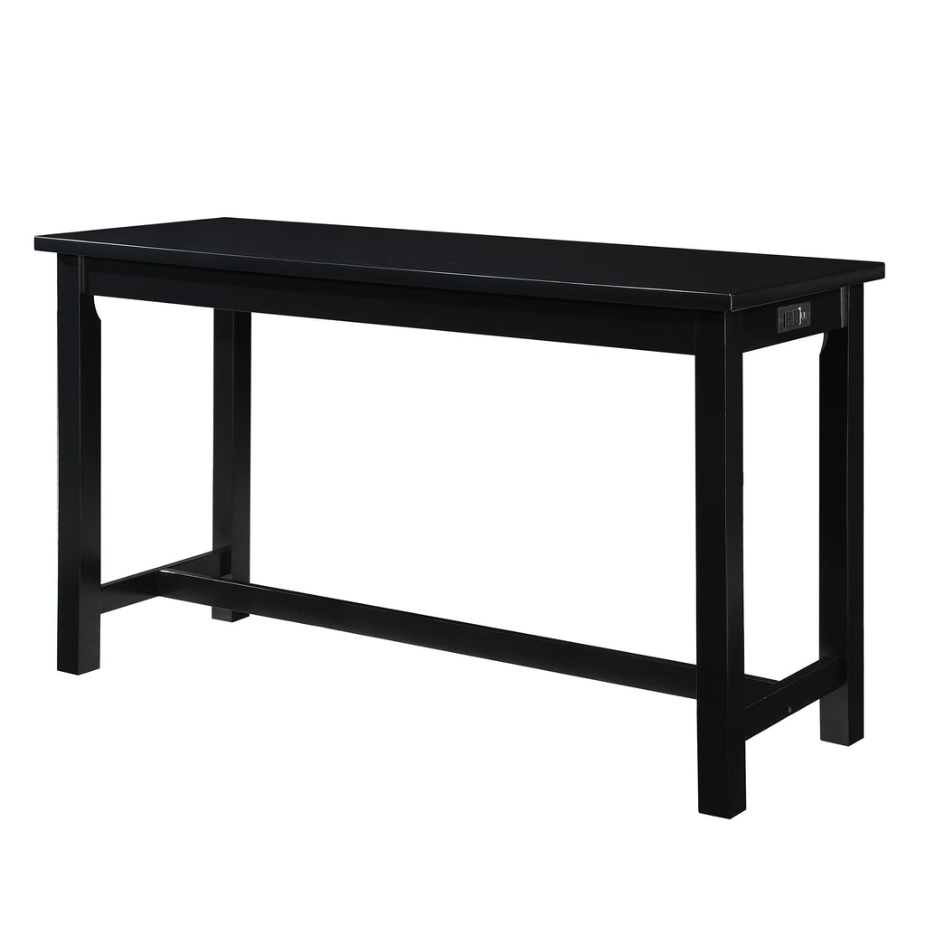 The elevated dining experience that the Connected Collection provides will fuel your device’s battery life while you fuel yourself. The convenience of built-in USB ports and A/C power turns your casual dining area into an efficient recharging station. The four-piece pack of the Connected Collection includes a counter height table and three barstools. A single drawer allows for discrete storage on the table’s side apron. As a neutral pallet for your decorative preference, the collection features a black finish, with the neutral gray tone of the barstool’s seats providing subtle accent. Table: 66.25 x 23.75 x 36.5H, Chair: 17 x 12 x 24.25H