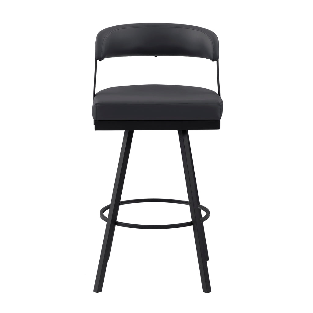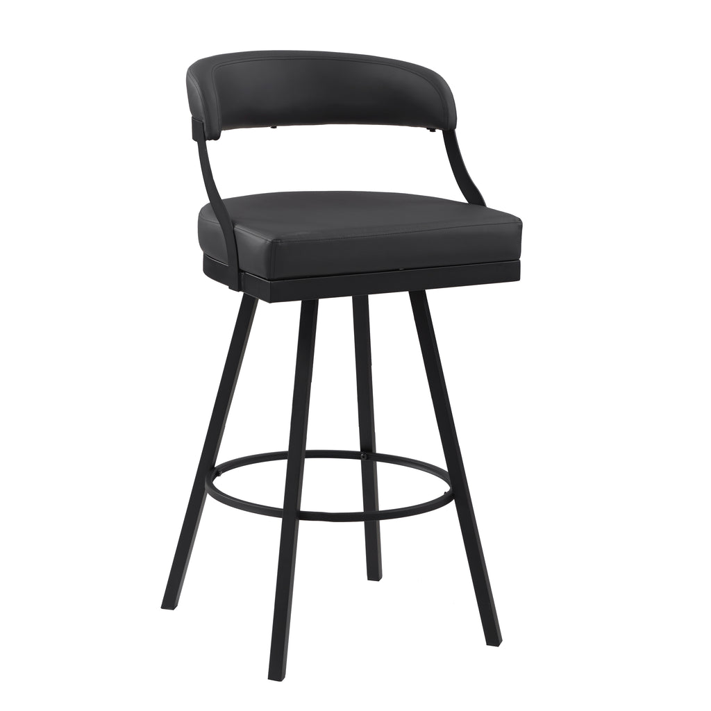 Designed for your home’s modern aesthetic, the Crowley Collection provides a stylish seating option for your mealtime and social activities. The 29-inch height chair features a contoured back, black metal framing, and black faux leather seat.