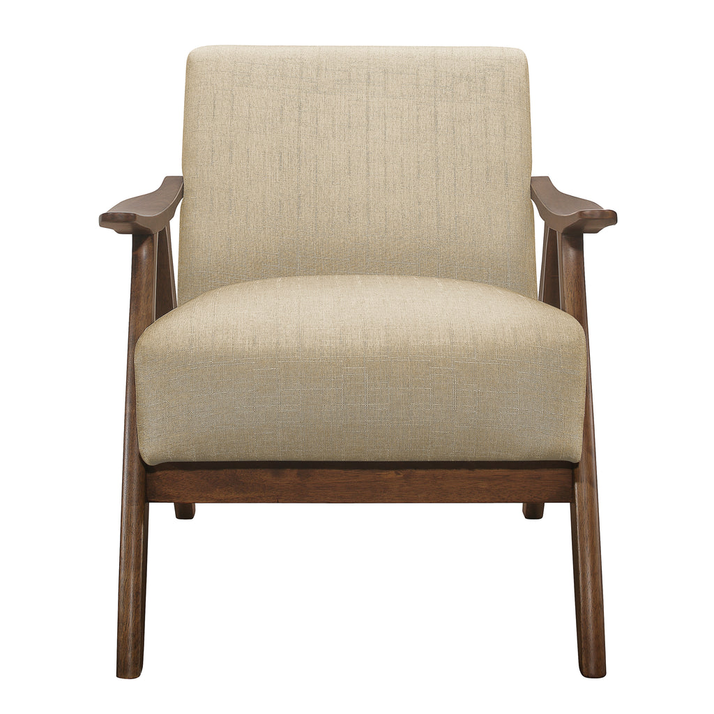- Exposed wood frame with walnut finish
