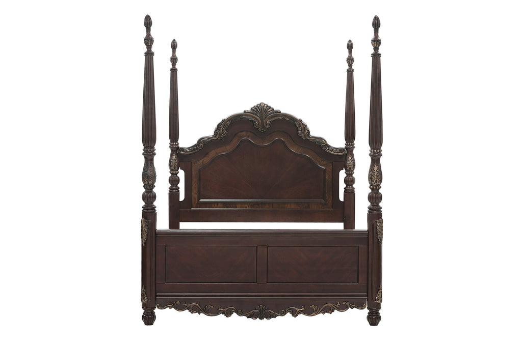 Walking into the bedroom that is occupied by the Deryn Park Collection immediately displays your love of the traditional aesthetic. Stately from every angle, sophisticated design elements blend to create this beautiful collection. Stately poster bed allows you the flexibility to fit the scale of your bedroom and the design to accommodate your personal style. Design elements include burl inlay, traditional bale and knob hardware, claw feet and shell motifs. The cherry finish is highlighted by gold tipping that accentuates the traditional feel of elegant Deryn Park Collection. None