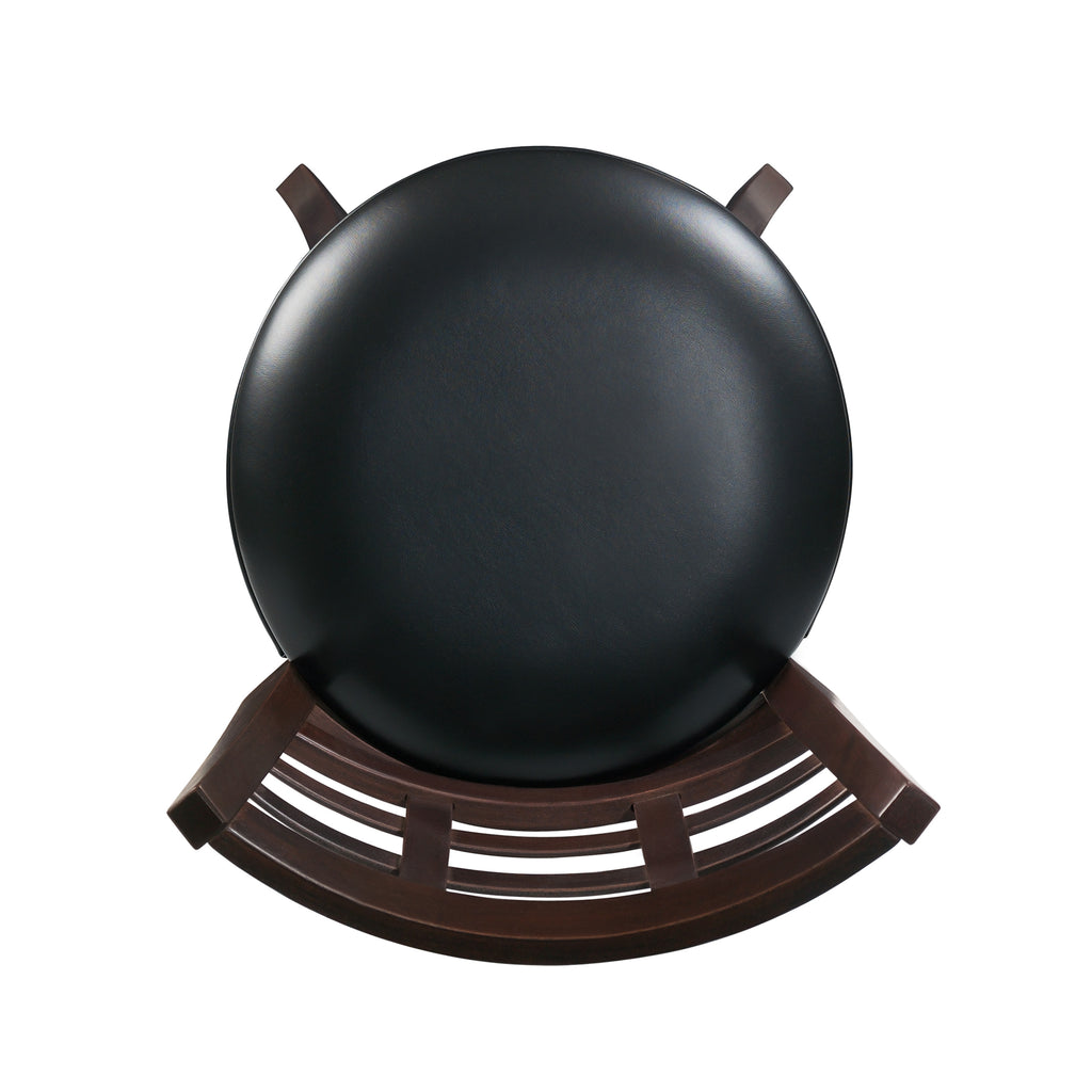 Enhance your kitchen island or counter-height table with this timeless and functional swivel counter height chair. Built on a durable solid wood frame and finished in a rich dark cherry stain, this stool delivers lasting quality and a sophisticated traditional look. The generously padded seat and supportive backrest are upholstered in sleek, easy-to-clean black faux leather, a top-searched feature for comfort and practicality. Designed for seamless use, the smooth 360-degree swivel feature and built-in comfortable footrest allow for effortless conversation and relaxed seating, making this an essential and durable addition to your dining or bar area.