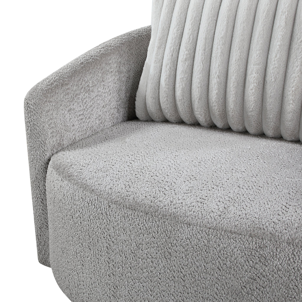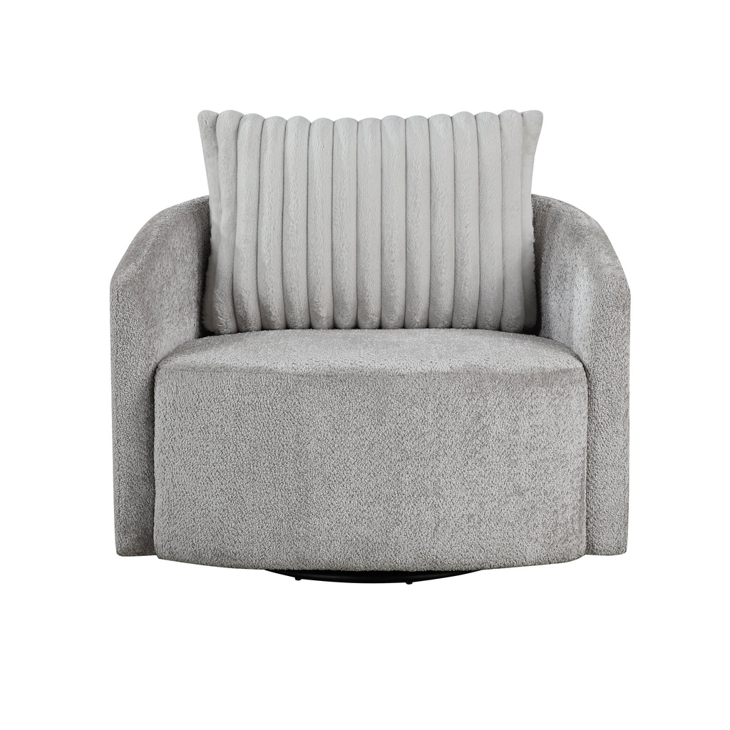 Enhance your living space with this spacious modern Francine Swivel Chair upholstered in soft gray chenille fabric, perfectly complemented by a plush corduroy back pillow for added texture and comfort. Designed for both style and versatility, this chair features a 360-degree swivel, allowing you to move with ease while enjoying ultimate relaxation. Ideal for living rooms, reading nooks, or home offices, this swivel chair combines sleek design with practical functionality. 40.5 x 36 x 34H
