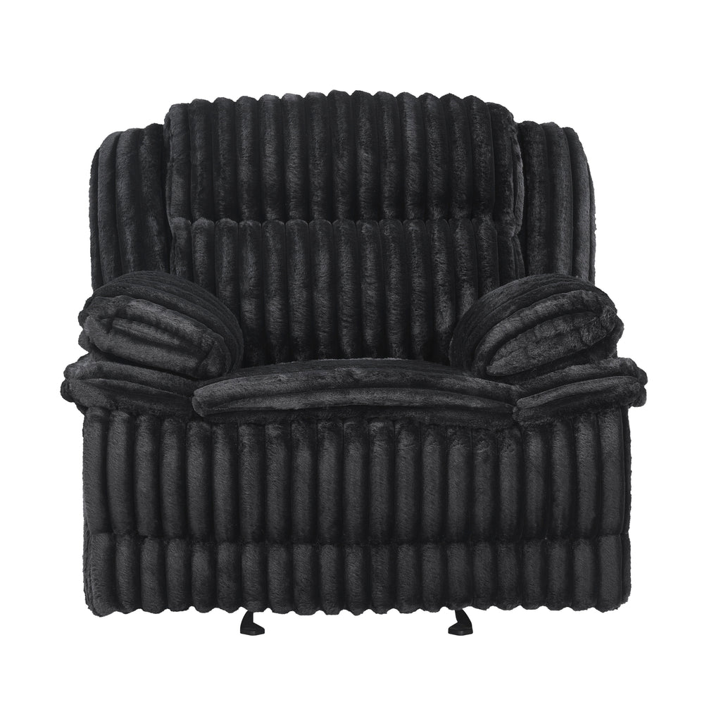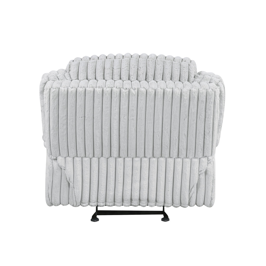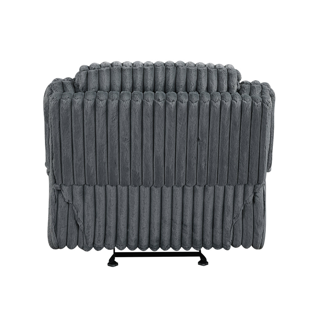 Indulge in ultimate comfort and modern style with our luxurious glider recliner chair, designed to be the perfect addition to any living space. Upholstered in sumptuously soft corduroy fabric, this recliner offers an inviting texture and sophisticated look that complements various decors. The smooth tab-pull reclining mechanism allows you to effortlessly transition into your preferred position, whether you're reading, watching TV, or simply unwinding after a long day. Engineered for lasting durability and support, its robust construction ensures years of relaxation, making it an ideal choice for unwinding in style and comfort.
