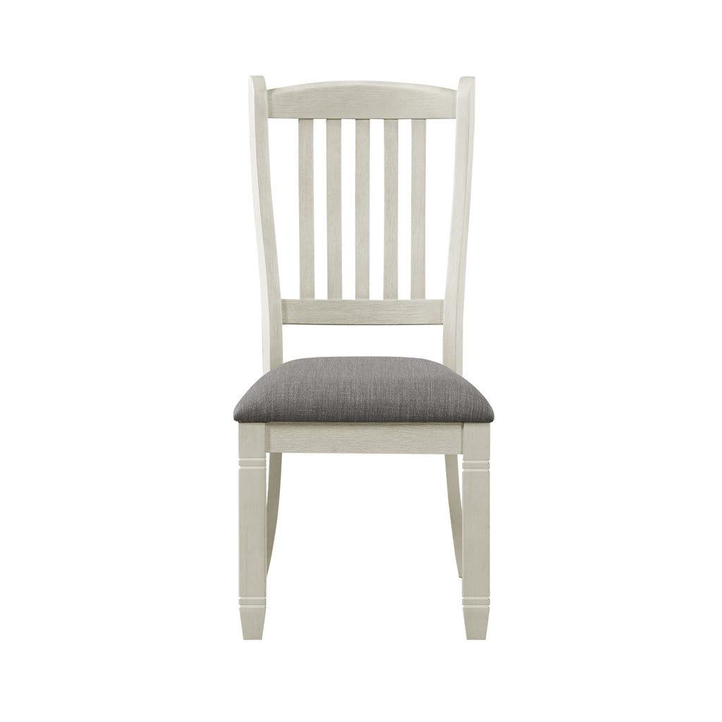 Inspired by the aesthetic of a casual country kitchen, the Granby Collection is an inviting gathering spot for mealtime with family and friends. The wood frame of the dining-height side chair is finished in antique gray and features a neutral tone gray fabric seat.