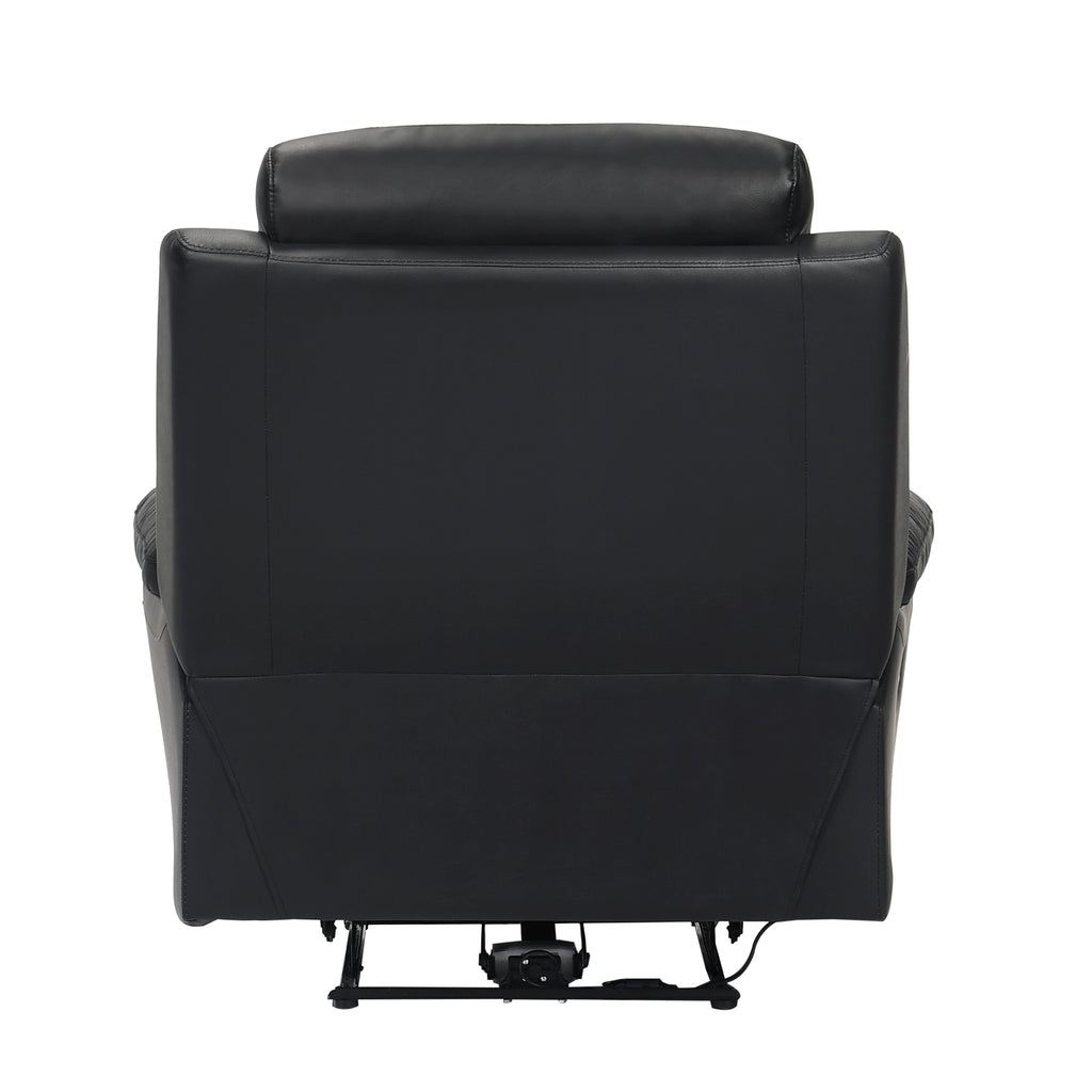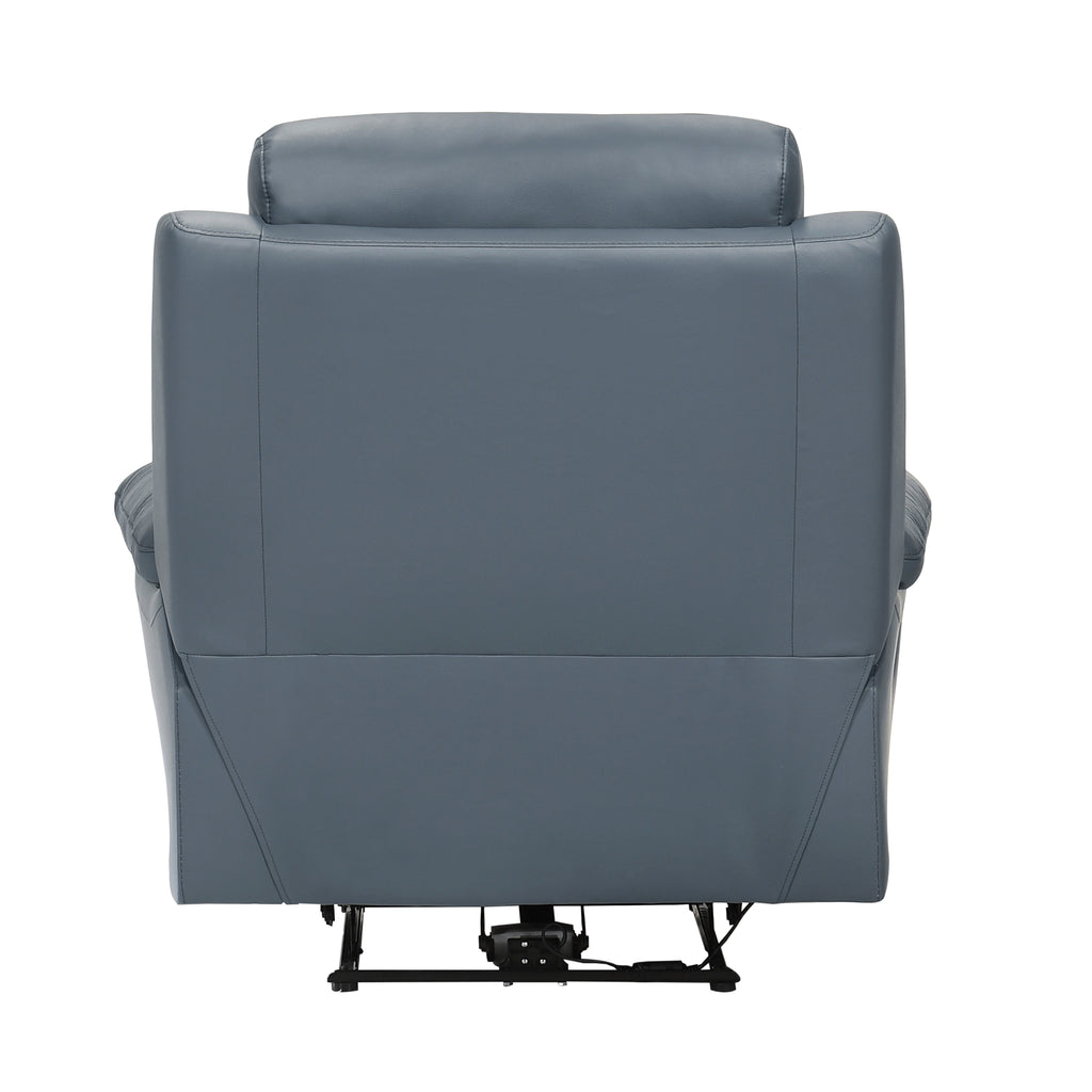 The Hancock Collection’s versatile look, paired with the feel of top grain leather and power reclining, will help to create a welcoming and comfortable space within your home. The reclining chair is engaged with a touch to the side mounted power control. The subtle modern frame of the is covered in 100 percent top grain leather where the body touches, with faux leather covering the remaining areas, its latte hue complementing your home’s décor.