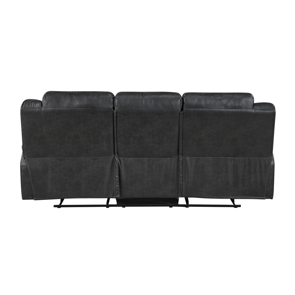 The Hazen Collection’s versatile style and functional design will be an inviting addition to your home’s living room. Dual end recliners are featured on the sofa, their reclining mechanisms engaged with a pull of the side mounted tabs, taking you from seated to prone in an easy motion. Black polished microfiber upholstery covers the plush pillow-top arms and contoured seating, creating a perfect combination ready for relaxation.