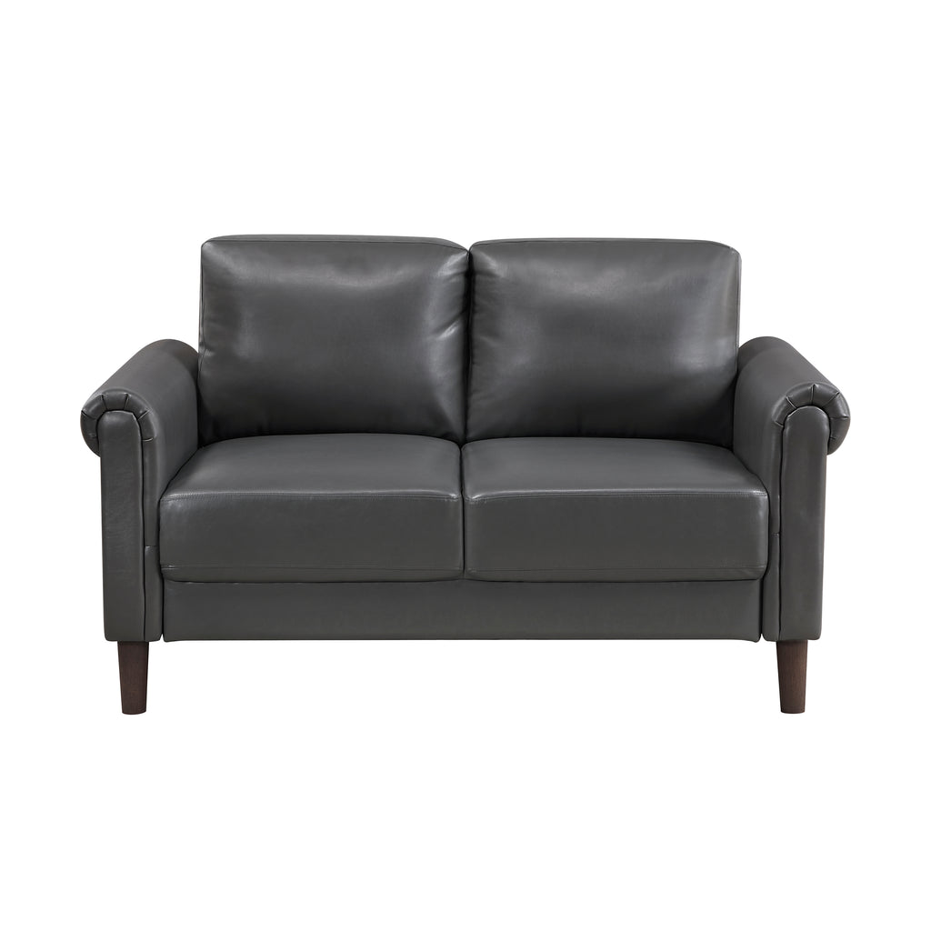 Enhance your space with this mid-century modern faux leather loveseat, offering a perfect blend of classic sophistication and contemporary comfort. Featuring rolled arms, plush seat cushions, and a sleek silhouette, this 2-seater sofa adds a refined touch to any setting. The durable faux leather upholstery provides a luxurious look with easy maintenance, while the sturdy wooden frame and tapered legs ensure long-lasting stability. Whether placed in a living room, apartment, office, or lounge area, this loveseat delivers comfortable seating with timeless elegance, making it an ideal centerpiece for relaxation and entertaining.