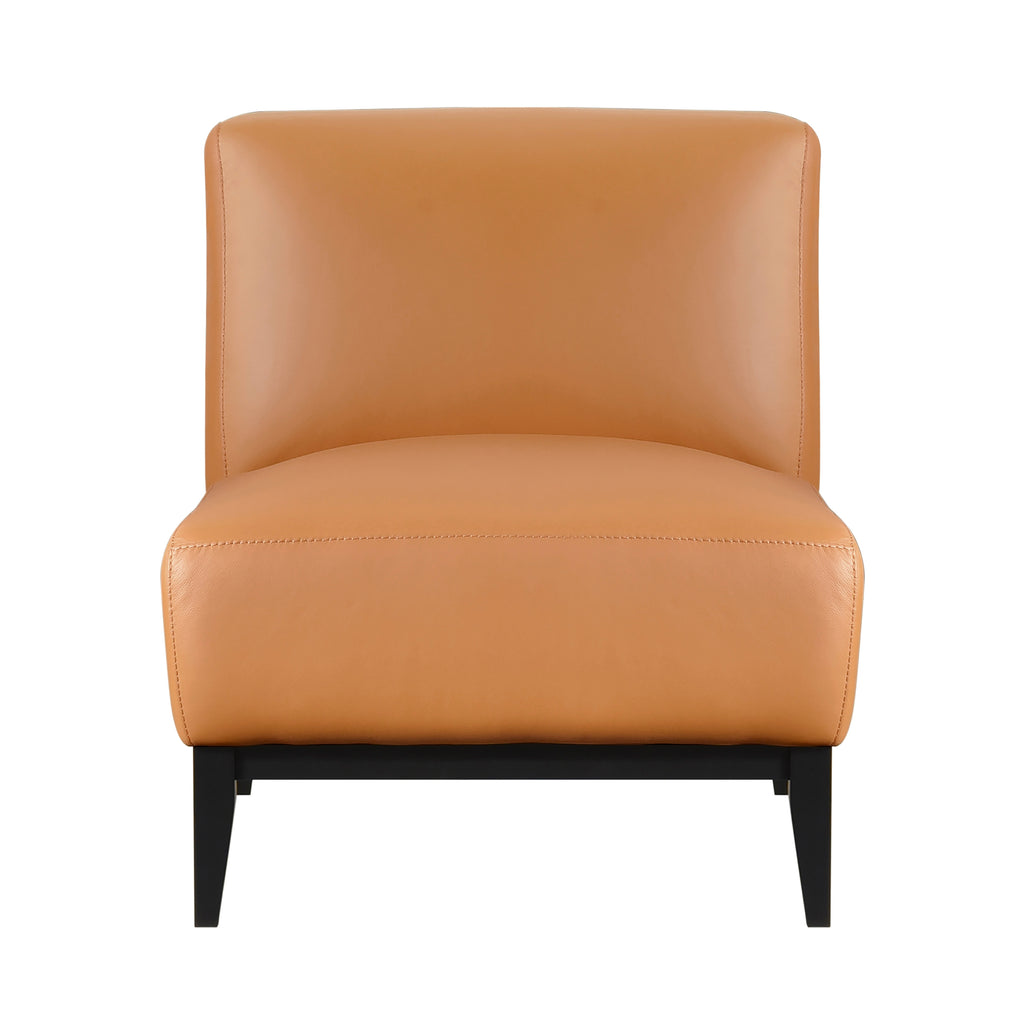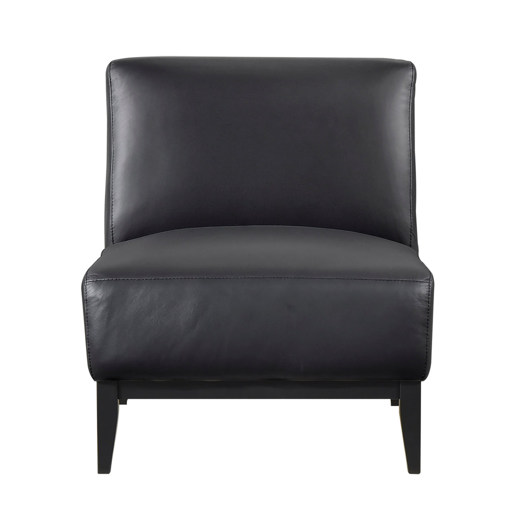 Elevate your living space with this sophisticated and comfortable slipper chair. Upholstered in 100% top grain leather, this chair offers a luxurious feel and timeless elegance. The solid wood and plywood frame ensures durability, while the high-density foam seat cushions provide exceptional comfort for extended relaxation. The attached back and seat cushions maintain a sleek profile, and the solid wood legs in a black finish add a modern touch. With a robust 300lbs weight capacity, this chair is designed to provide both style and support. Assembly is required, but the addition of this refined leather slipper chair will undoubtedly enhance the aesthetic of any room.