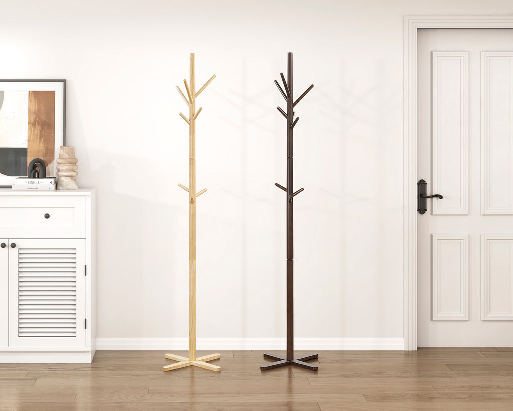 Organize your entryway or mudroom with timeless style and exceptional functionality with this modern coat rack. Crafted from solid wood and finished in a rich dark brown, this piece offers robust stability and a sophisticated aesthetic that complements traditional and contemporary decors alike. Its clever 3-tier design features a total of 9 hanging hooks, providing ample space for coats, hats, scarves, and bags, helping to keep your home tidy and welcoming. While assembly is required, its durable construction and generous storage capacity make it an ideal and practical addition to any busy household, offering a convenient solution for all your outerwear needs.