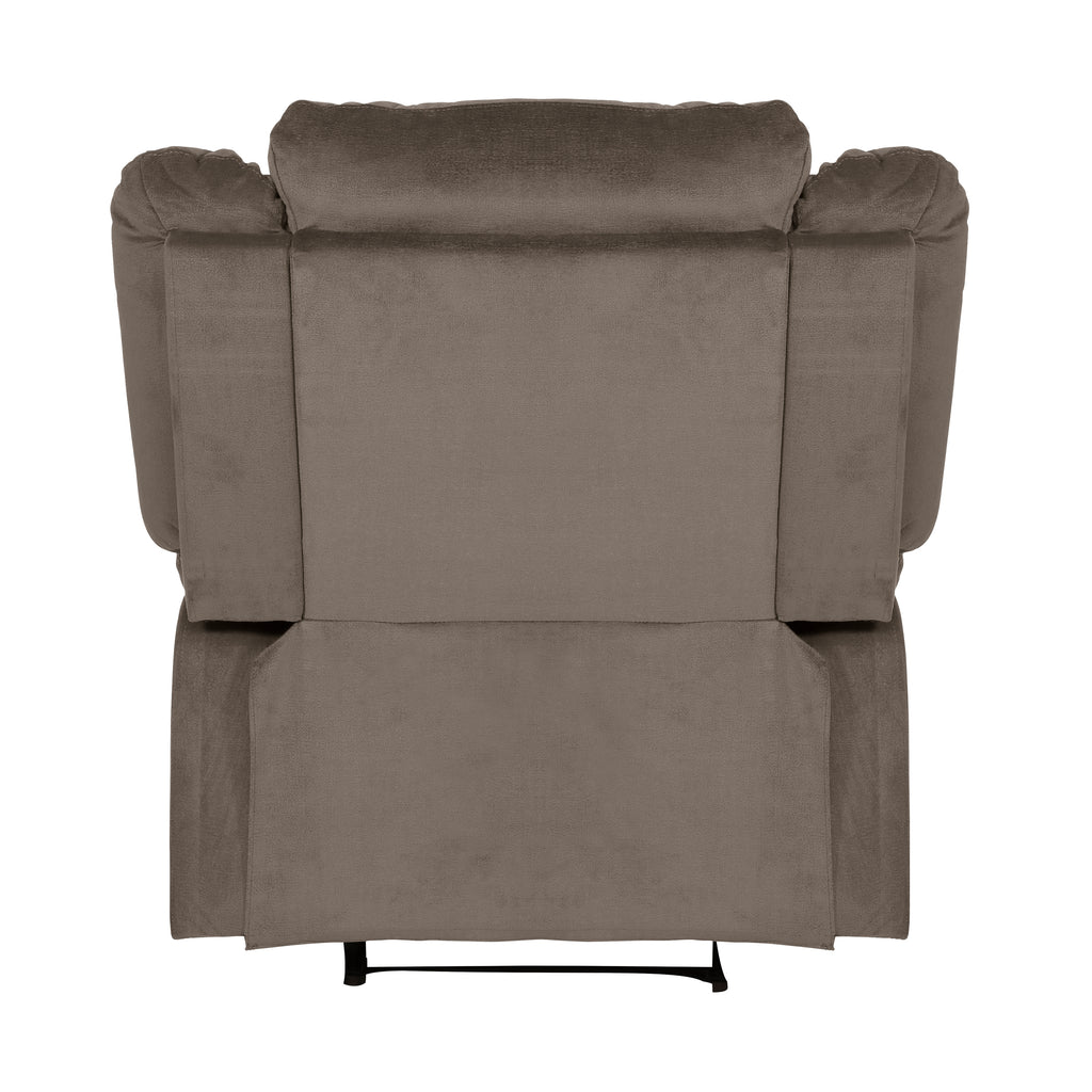 The classic transitional styling of the Jarita Collection creates a look that is perfect for your casual living space. Offered in chocolate microfiber, the reclining chair offers plush seats, backs and arms. With the pull of the manual reclining mechanism, you are taken from a seated to prone position in an easy motion.