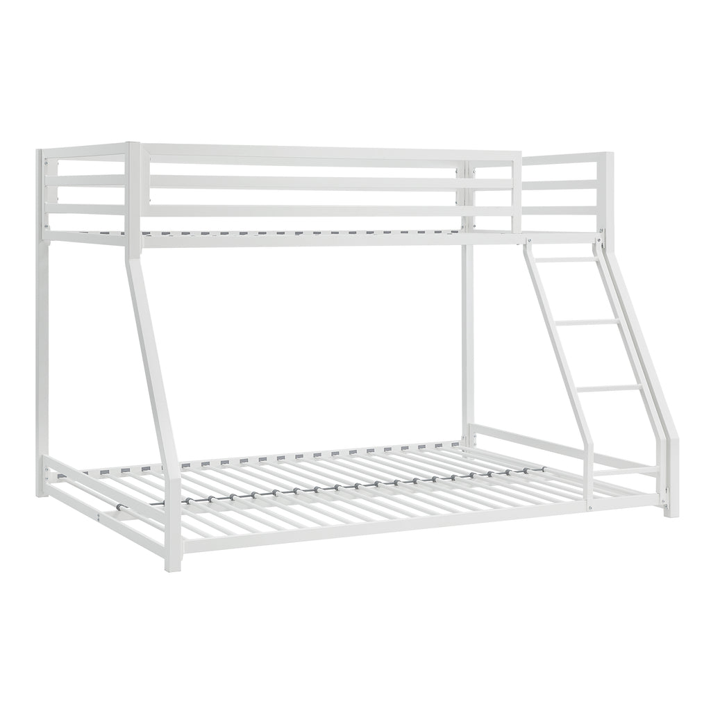 The Jovie Collection provides a creative sleep space solution for your children’s bedroom. The ground-level platform of the twin-over full bunkbed is a unique twist on the look of the stacked bedroom staple, making bedtime a breeze, while calling dibs on the top twin bunk is made easy with the mounted ladder. Constructed of metal framing and finished in black, the bunkbed is a neutral canvas for the creative stylings of your children’s wildest dreams.
