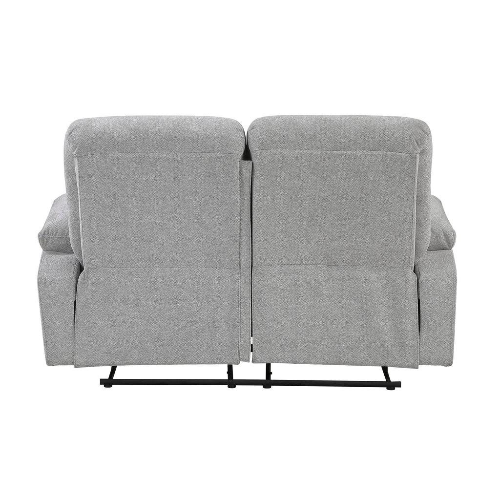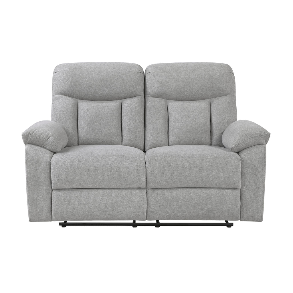 Experience shared comfort and effortless relaxation with this gray chenille reclining loveseat. Featuring a robust solid wood and plywood frame with metal reinforced seats, foam padding over pocket coils, and soft chenille fabric upholstery, this loveseat offers both durability and a luxurious seating experience. The tab pull reclining motion allows each person to recline independently. With a 300lb weight capacity per seat (600lb total), this loveseat is perfect for enhancing your living room or entertainment space with a blend of comfort and functionality.