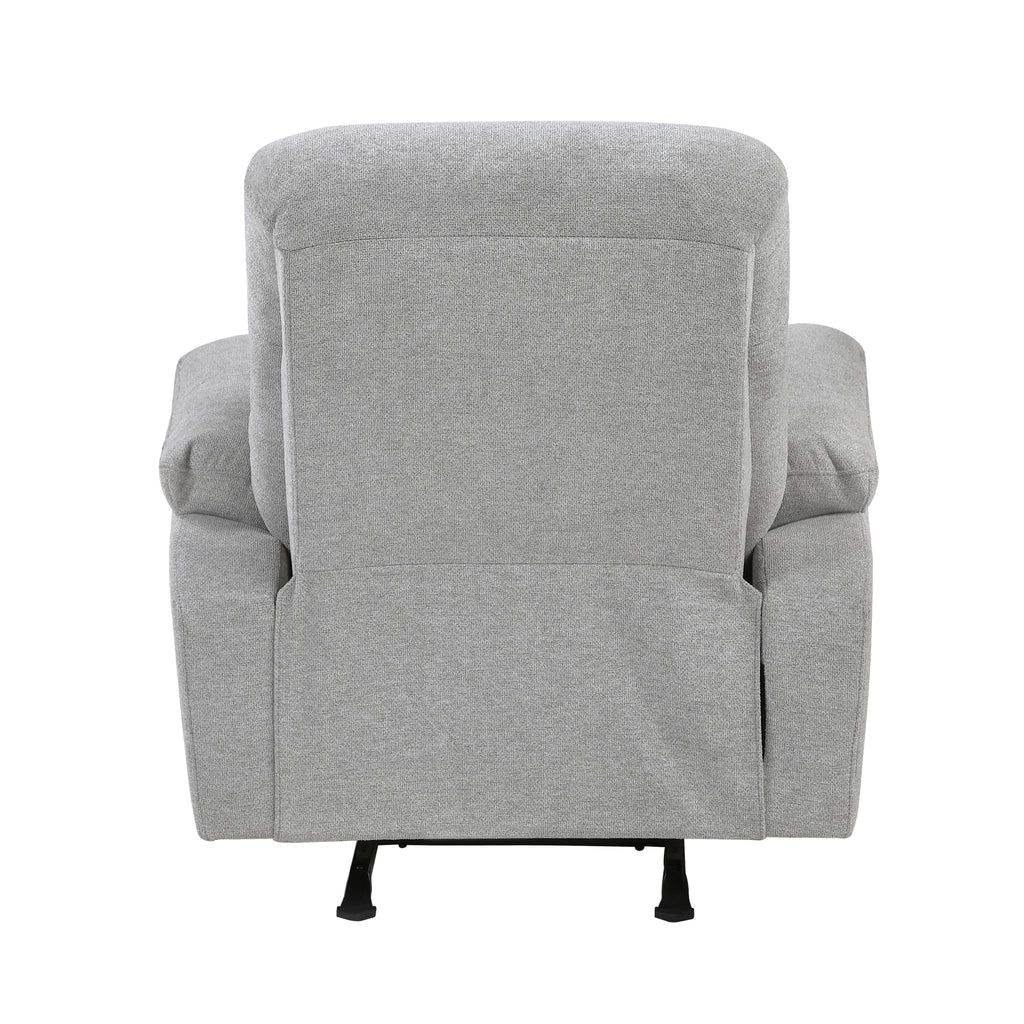 Experience ultimate relaxation and soothing comfort with this gray chenille rocking recliner. Featuring a robust solid wood and plywood frame with a metal reinforced seat, foam padding over pocket coils, and soft chenille fabric upholstery, this recliner offers both durability and a luxurious seating experience. The gentle rocking motion provides a calming effect, while the tab pull reclining mechanism allows for effortless relaxation. With a 300lb weight capacity, this recliner is perfect for enhancing your living room, nursery, or reading nook with a blend of comfort and functionality.