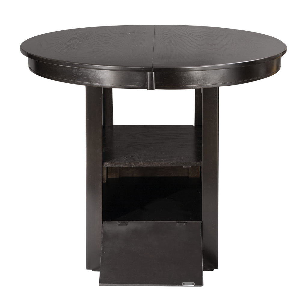 Utilizing the traditional elements of mission styling, the Junipero Collection adds the feel of the Arts and Crafts design movement to your casual dining room. The counter height pedestal table base supports an oval top and features storage accessible behind the drop-panel door. Framing, unique to the classic style comprises design of the table base. The white finish over oak veneer serves to highlight the wood’s grain.
