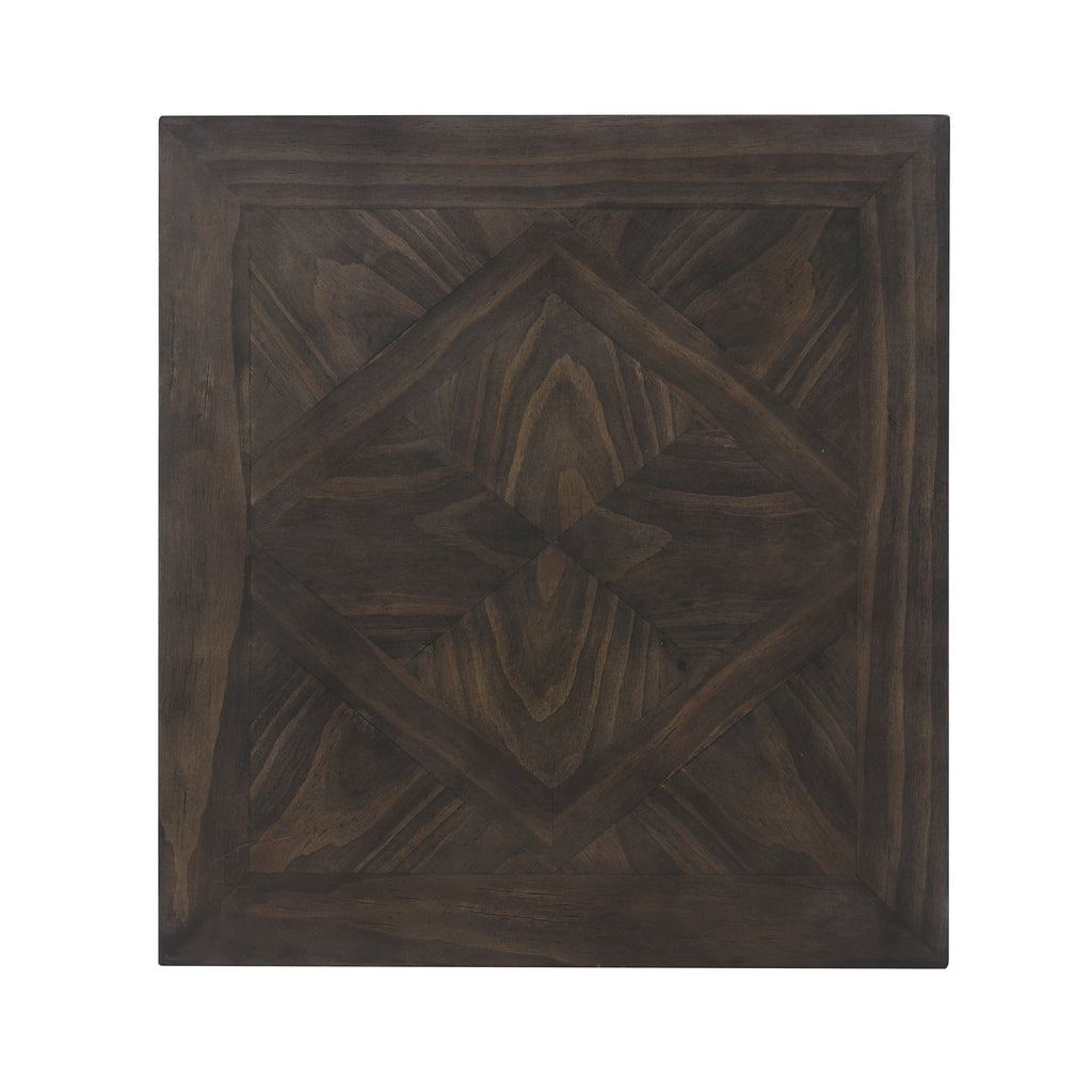 Add a touch of rustic charm and practical style to your living room or bedroom with this farmhouse-inspired end table. Expertly crafted from pine veneer, wood, and engineered wood with a rich brown finish, this piece features a sturdy and timeless design. The table includes a single dovetail drawer with smooth ball-bearing glides, providing a convenient space for discreetly storing essentials like remote controls or books. A lower open shelf offers the perfect spot to display your favorite decor, plants, or a stack of magazines. Finished with a striking gunmetal bar pull and decorative geometric accents, this end table is the perfect blend of rustic character and modern functionality.