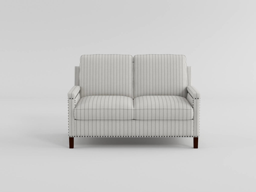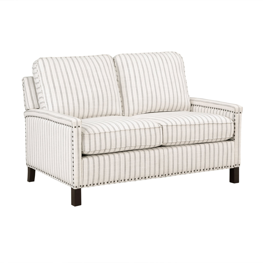 Traditional accents abound in the design of the Landrum Collection, their understated elegance making for classic addition to your living room. Nailhead trim and dark brown finished solid wood legs complement the striped textured fabric that covers the love seat. The reversible backs and seat cushions of the seating group are perfect for your active home. 54 x 35 x 37H