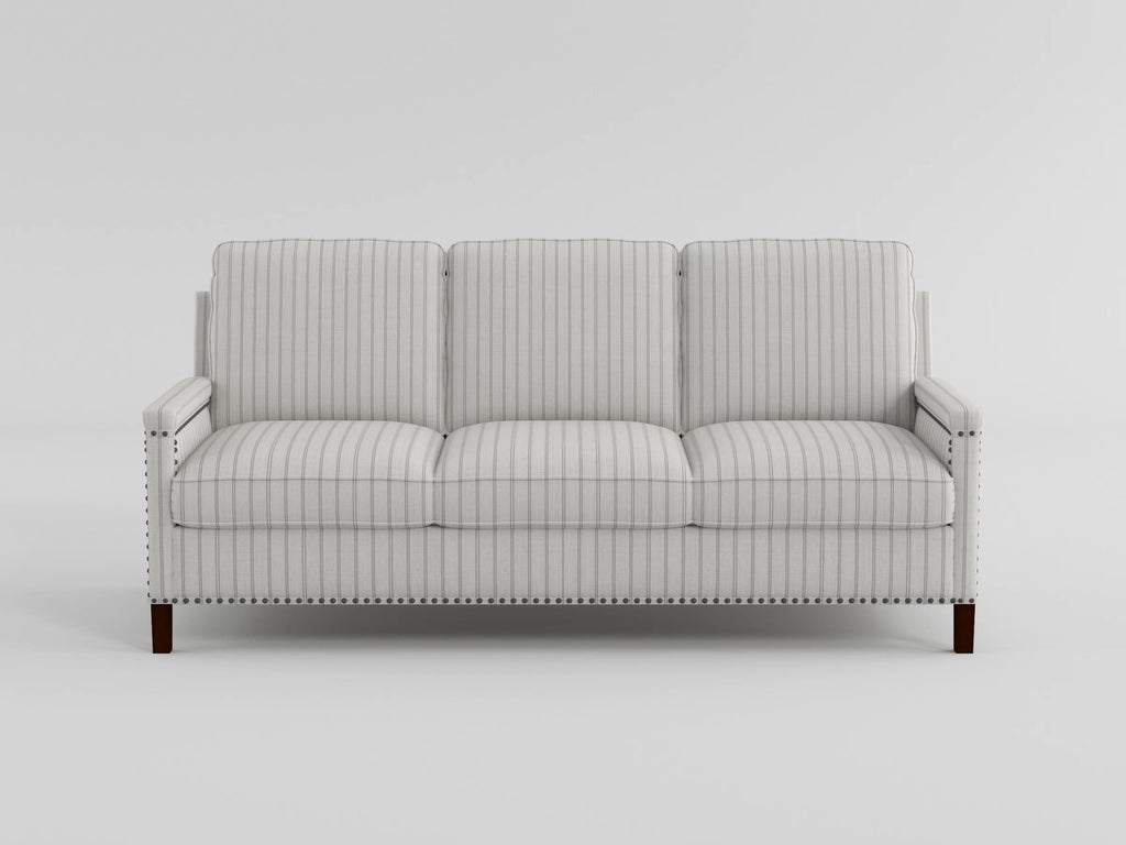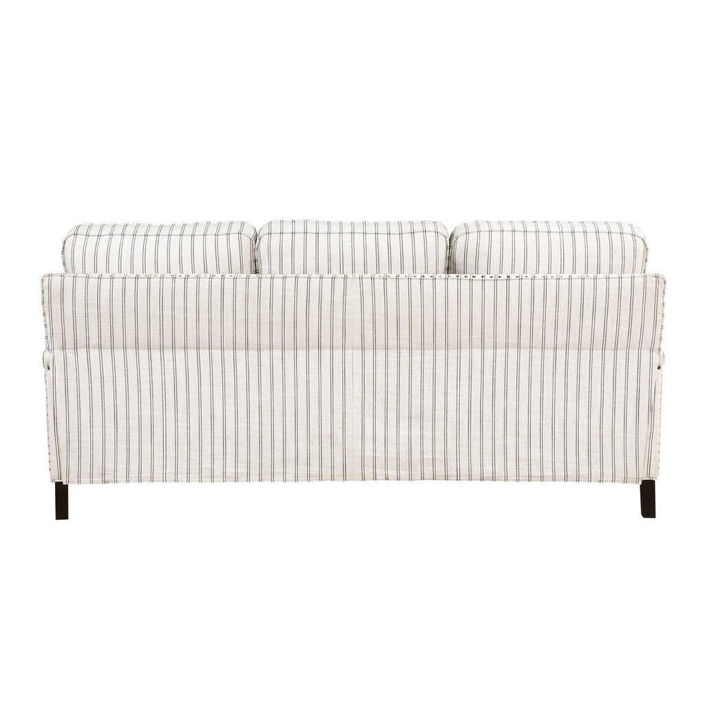 Traditional accents abound in the design of the Landrum Collection, their understated elegance making for classic addition to your living room. Nailhead trim and dark brown finished solid wood legs complement the striped textured fabric that covers the sofa. The reversible backs and seat cushions of the seating group are perfect for your active home. 78 x 35 x 37H