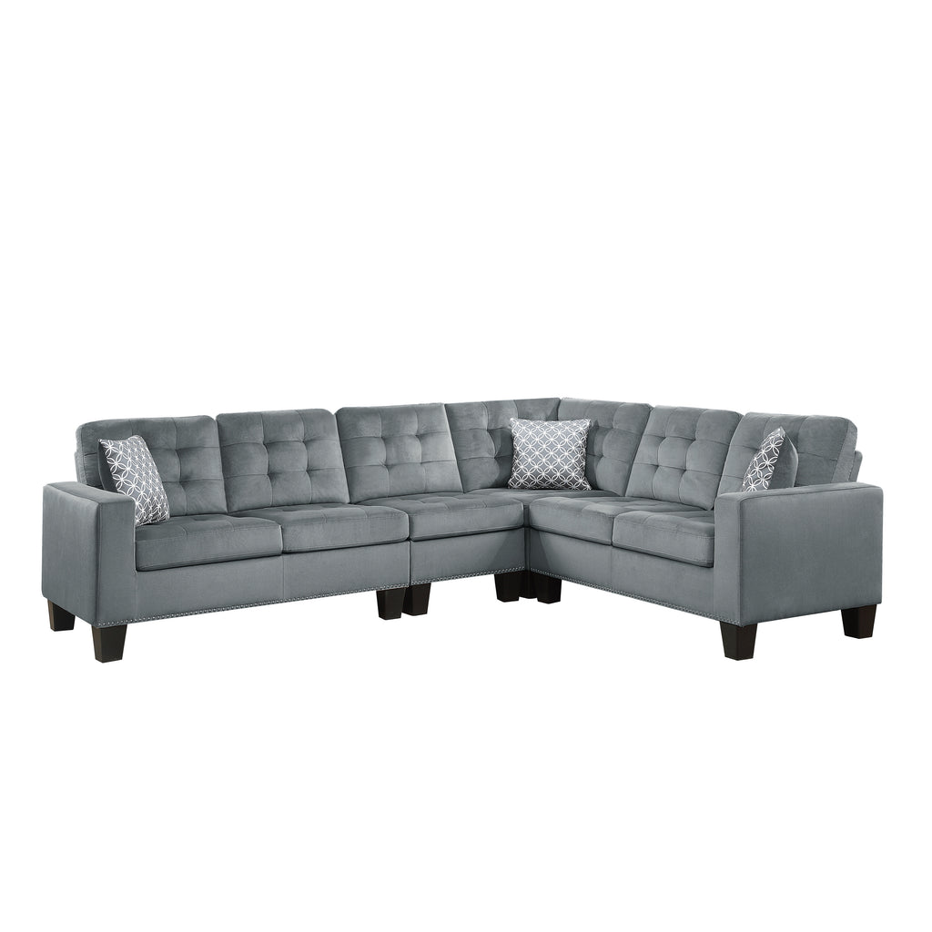 Subtle traditional styling provides a clean and classic look for your home in the Lantana Collection. The sectional allows for the perfect placement within your living room. Gray fabric with contrast pillows that furthers the look and versatility for placement within a number of home decors. 84 x 107 x 35H