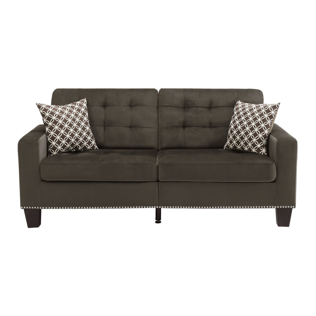 Subtle traditional styling provides a clean and classic look for your home in the Lantana Collection. Available in love seat, sofa or sectional configuration, the options allow for the perfect placement within your living room. Chocolate fabric with contrast pillows that furthers the look and versatility for placement within a number of home decors. None