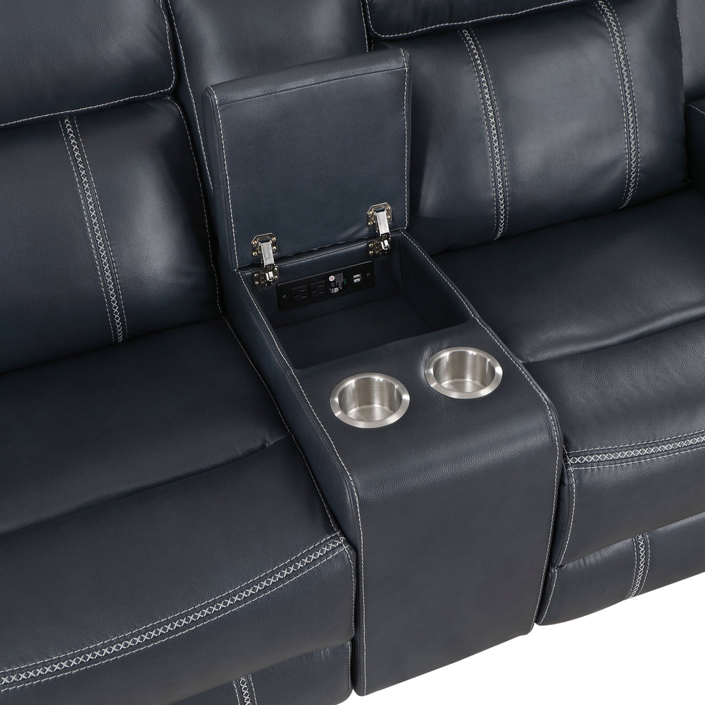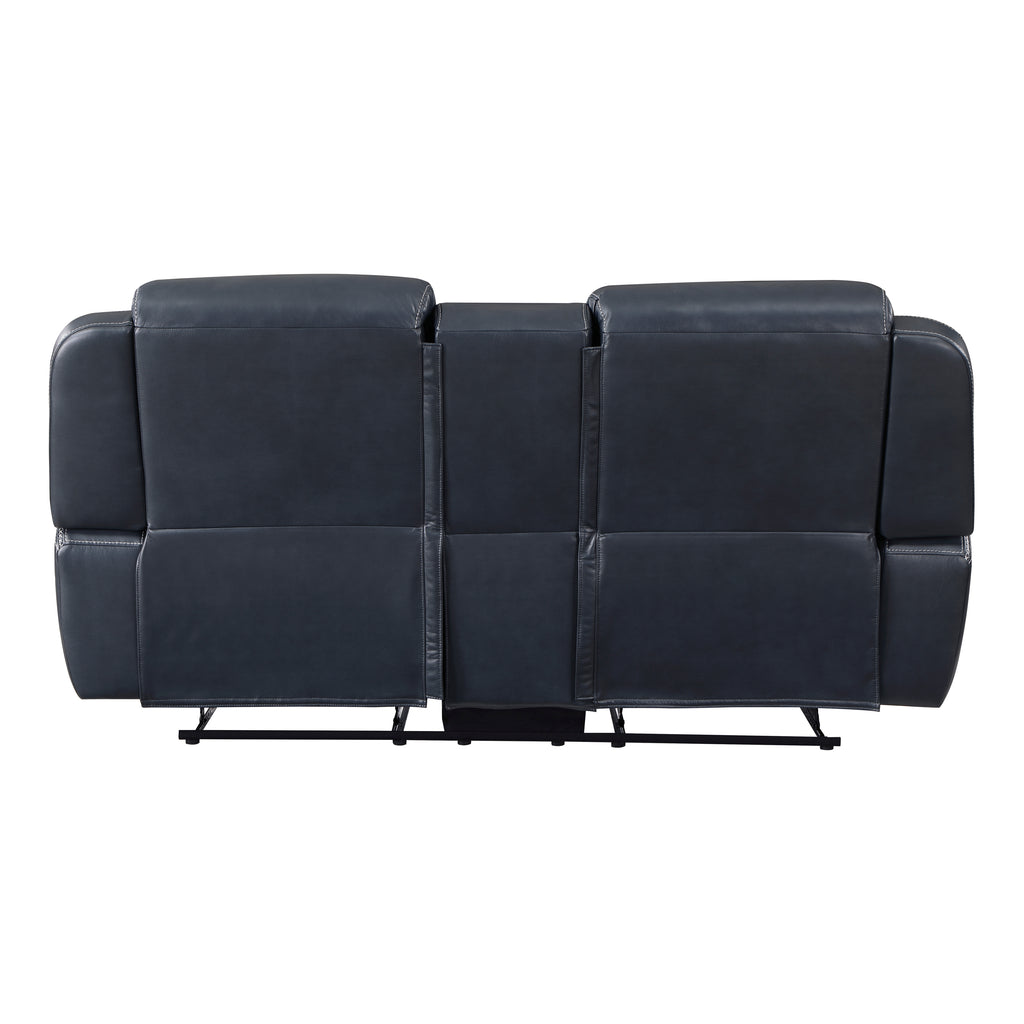 Settle in and get comfortable, the Littleton Collection is ripe with functional accents to elevate your seated experience. Black breathable faux leather covers the collection with white contrast stitching defining the modern contoured profile and seats of the collection. The love seat features dual end manual motion reclining mechanisms, their function taking you from seated to prone with the pull of the side-mounted motion tabs. The love seat’s center console features hidden storage, two cupholders, receptacles, and USB ports.
