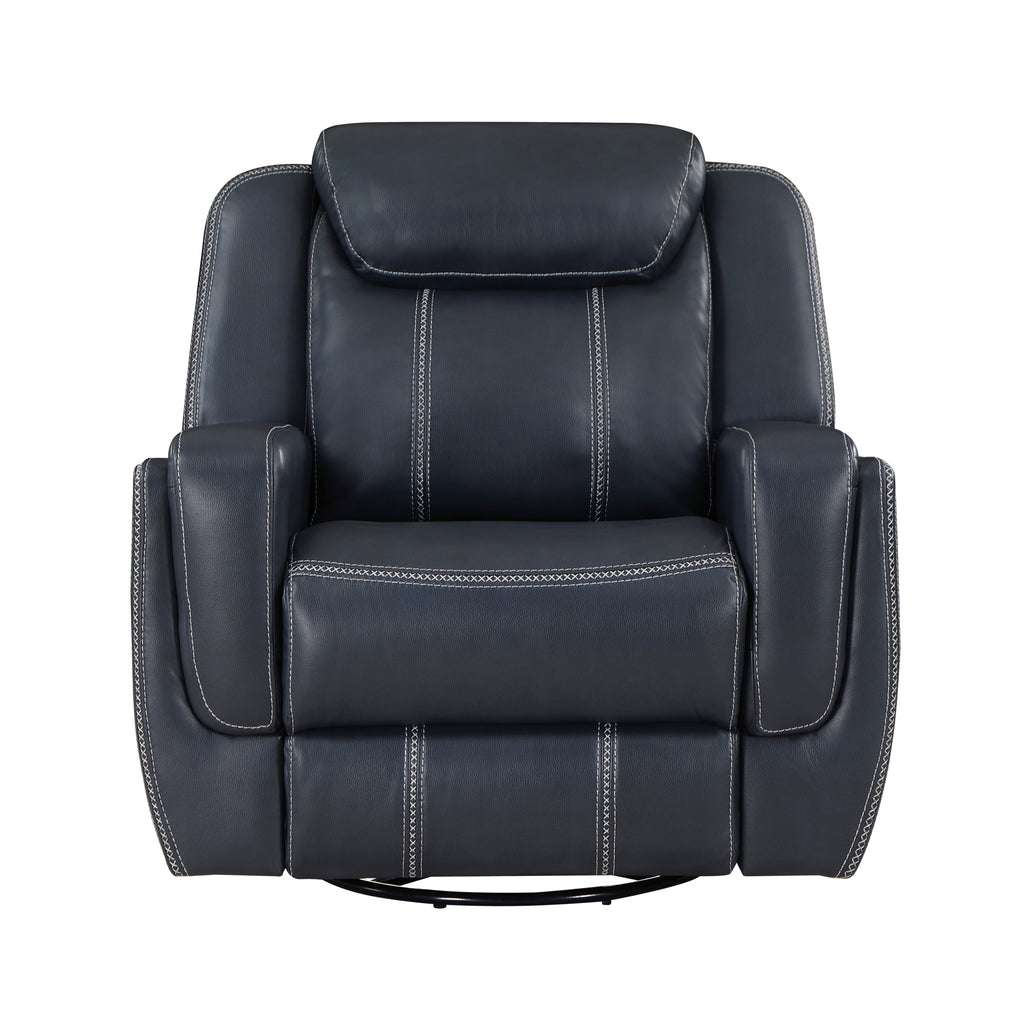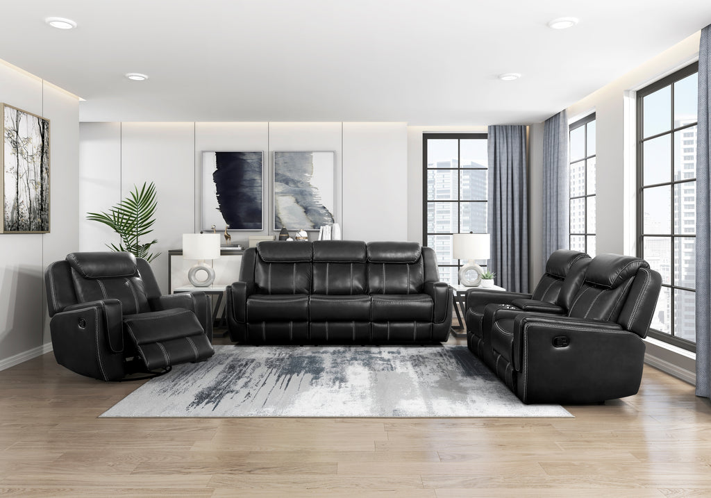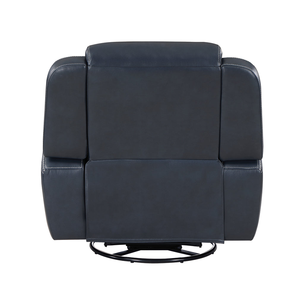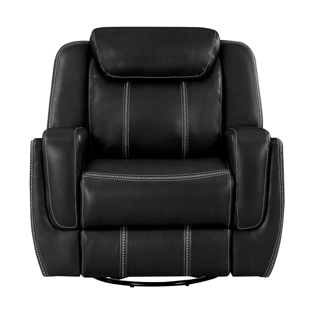 Settle in and get comfortable, the Littleton Collection is ripe with functional accents to elevate your seated experience. Black breathable faux leather covers the collection with white contrast stitching defining the modern contoured profile and seats of the collection. The 360-degree swivel base of the manually engaged recliner chair has a gentle gliding motion for your maximized comfort.