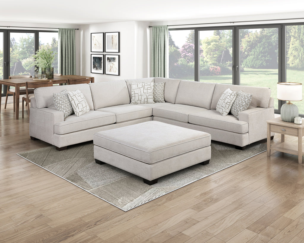 Maximize comfort and flexibility in your living room with this oversized ottoman, an essential accessory for your sectional or as a standalone piece. Upholstered in a soft, durable chenille fabric in a neutral tone, this ottoman provides an extra seat, footrest, or coffee table surface. It offers resilient support thanks to high-density foam padding over pocket coils and is built on a sturdy solid wood and plywood frame, capable of handling a 300lbs weight capacity for dependable long-term use. Finished with solid wood legs in a dark brown tone, this versatile piece is the perfect addition to complete your seating arrangement.